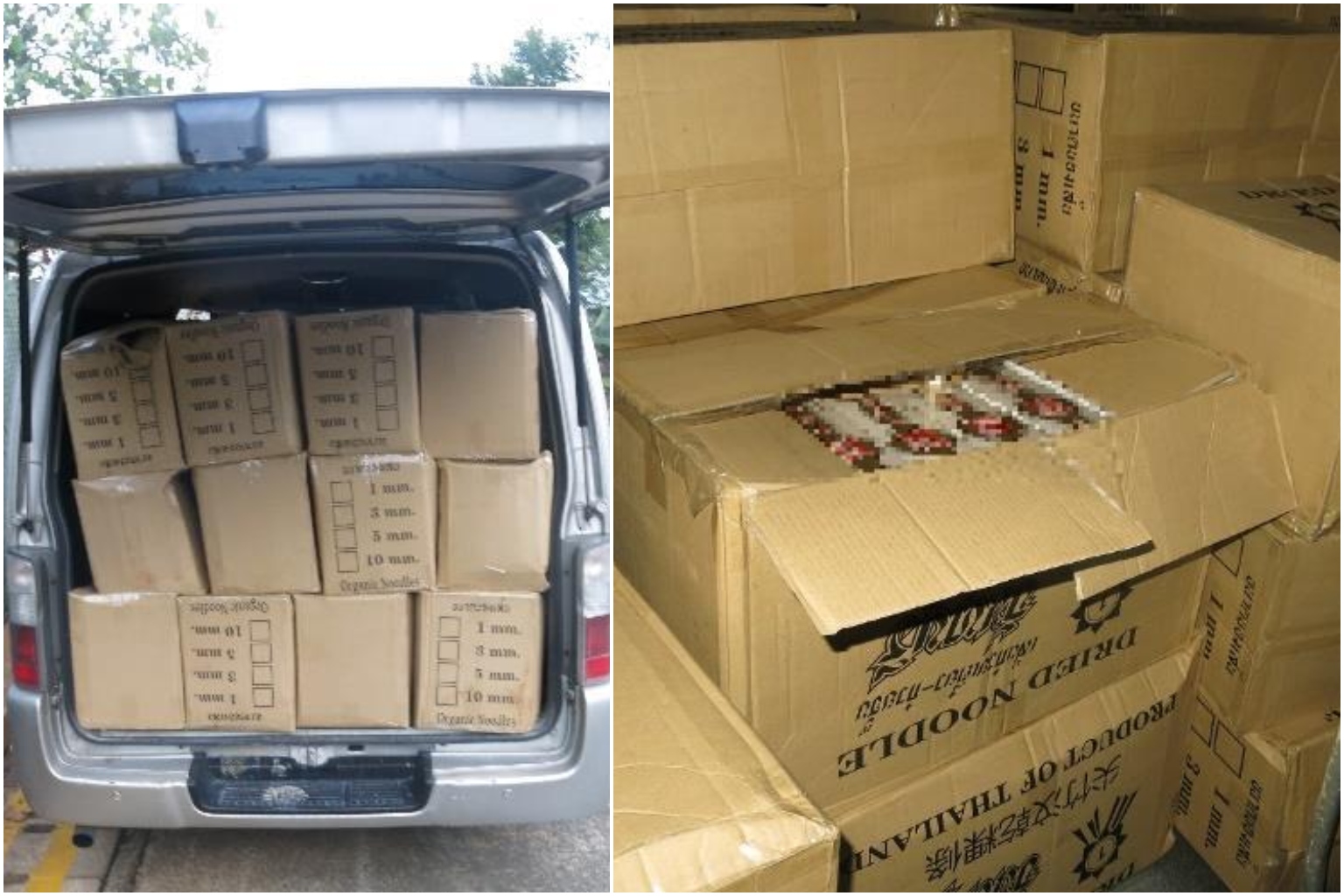 Officers inspected the van and found brown carton boxes labelled "dried noodles" with duty-unpaid cigarettes inside.
