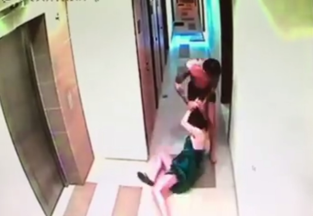 Closed circuit television footage that was posted on Facebook on Friday (March 4) showed a man, whose arms and back were tattooed, dragging a woman from a lift landing into an apartment.