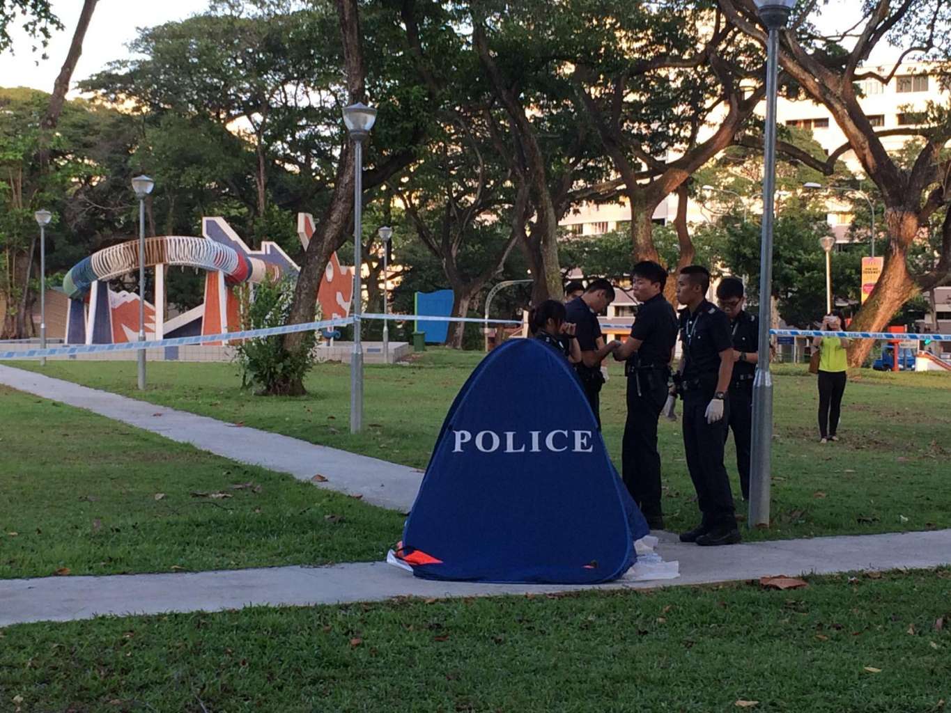 When the retiree got closer, she realised he was dead, as his neck was twisted in an unnatural position, she told The Straits Times.