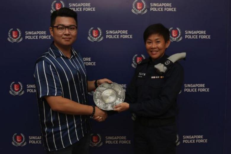 Mr Goh Tong En was given a Public Spiritedness Award by Deputy Assistant Commissioner of Police Evon Ng in a ceremony at the Public Transport Security Command on Aug 16, 2018.