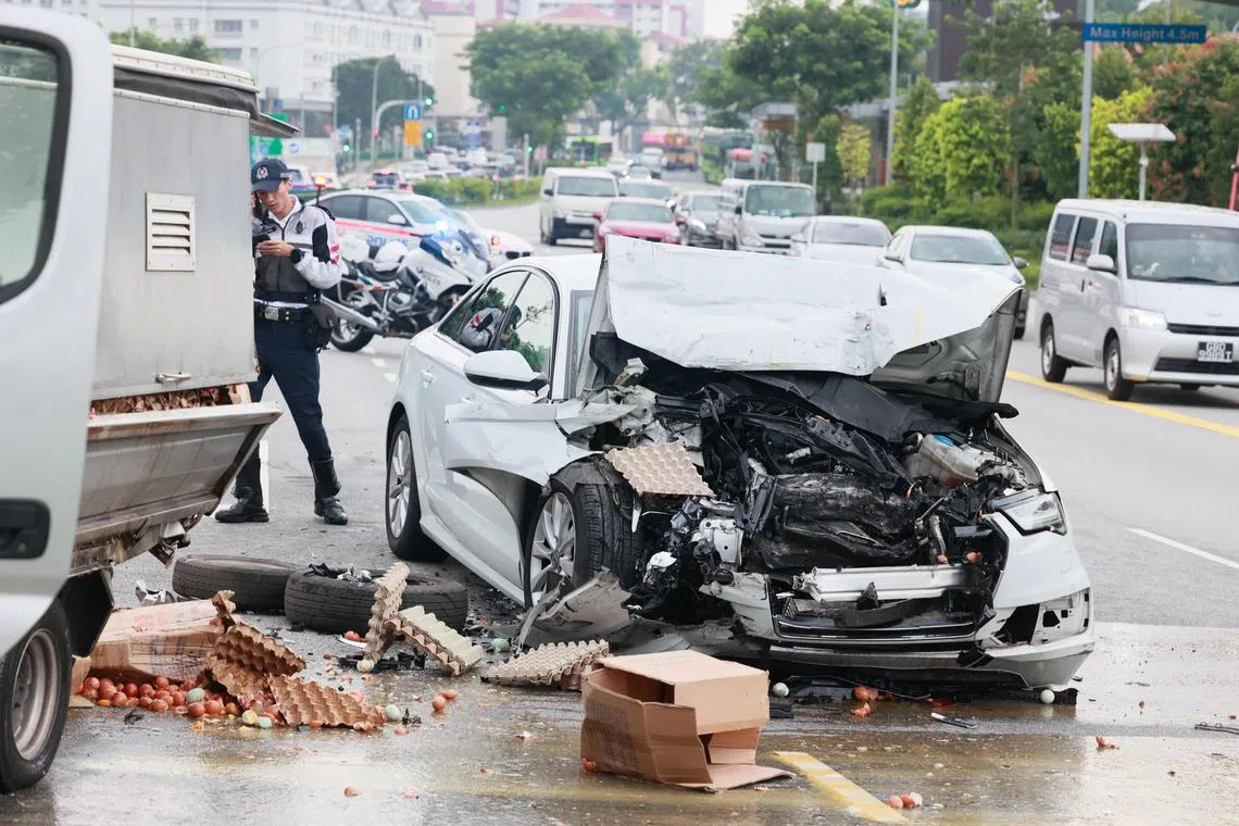 A 54-year-old man who was driving one of the lorries had minor injuries but refused to be taken to hospital. He was assessed on-site by a Singapore Civil Defence Force paramedic.