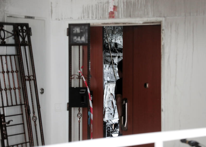 Chinese-language newspaper Shin Min Daily News reported on Saturday that the couple had escaped the fire by climbing onto the flat's air-conditioner ledge but the man dashed back into the burning flat to save his pets. He later fell unconscious near the toilet.