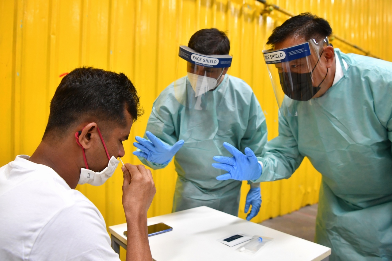 Workers can carry out the self-tests in their rooms at their own convenience, but must be supervised by MOM's Forward Assurance and Support Teams, the dorm operator or a designated worker in charge of the room. They must then submit their test result using the FWMOMCare application.