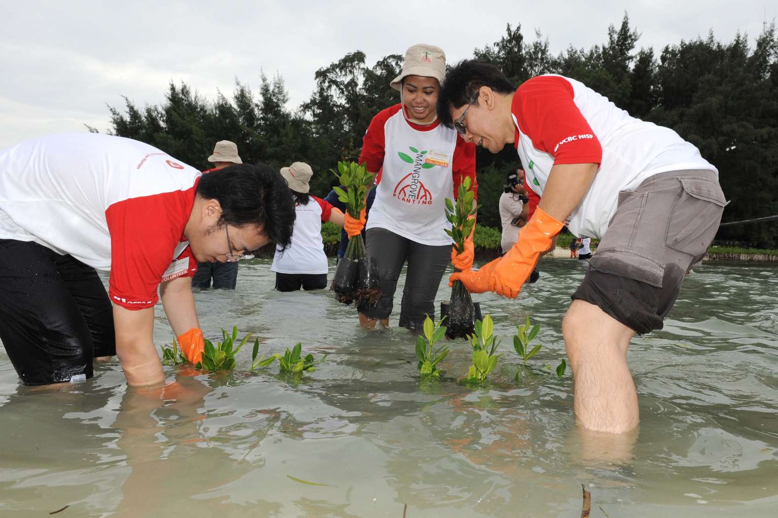 Staff from OCBC planted 10,000 mangrove trees along the coastal shores of Karya Island, off Jarkarta, in one afternoon.