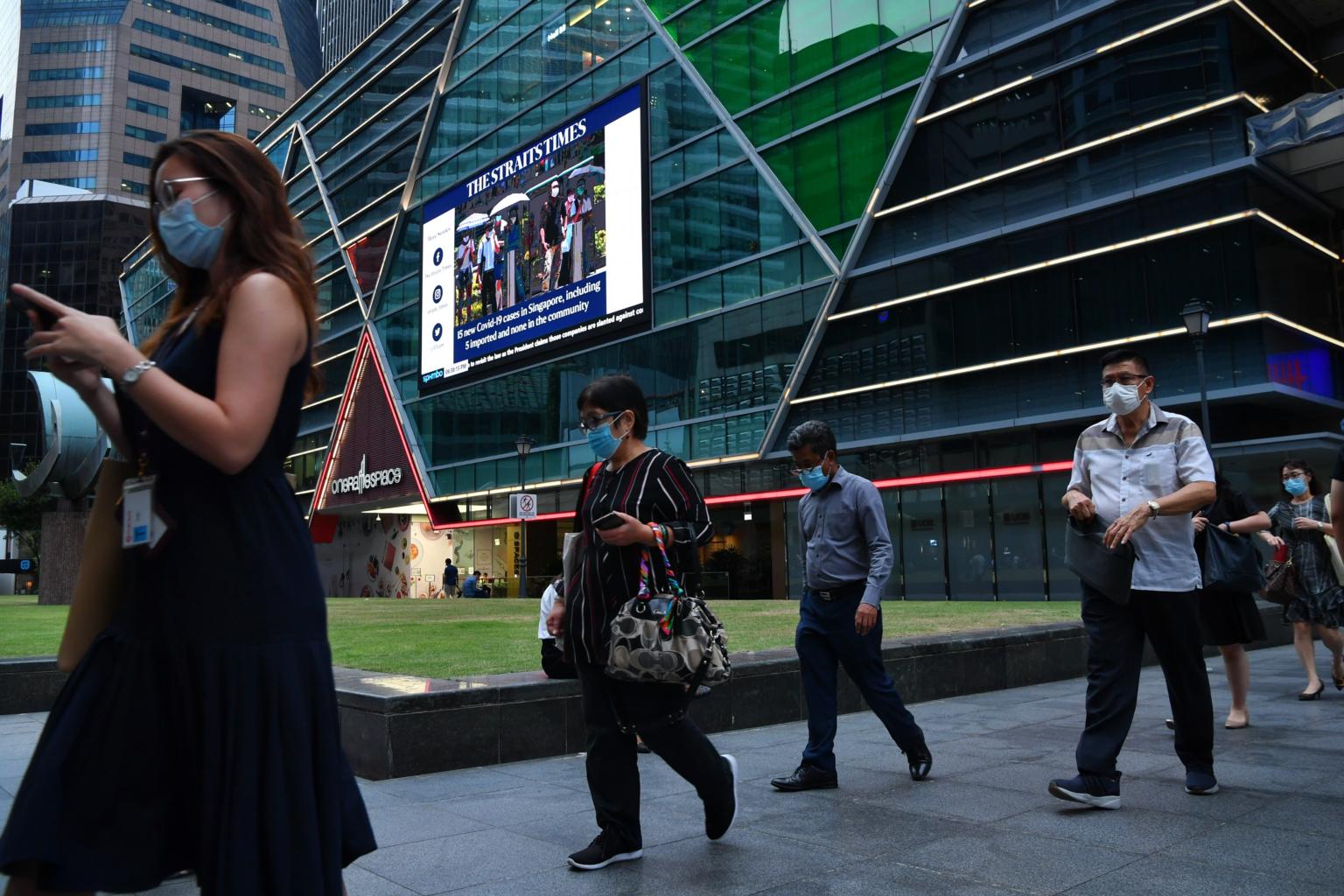 Office workers in masks after work hours at Raffles Place on Sept 24, 2020.