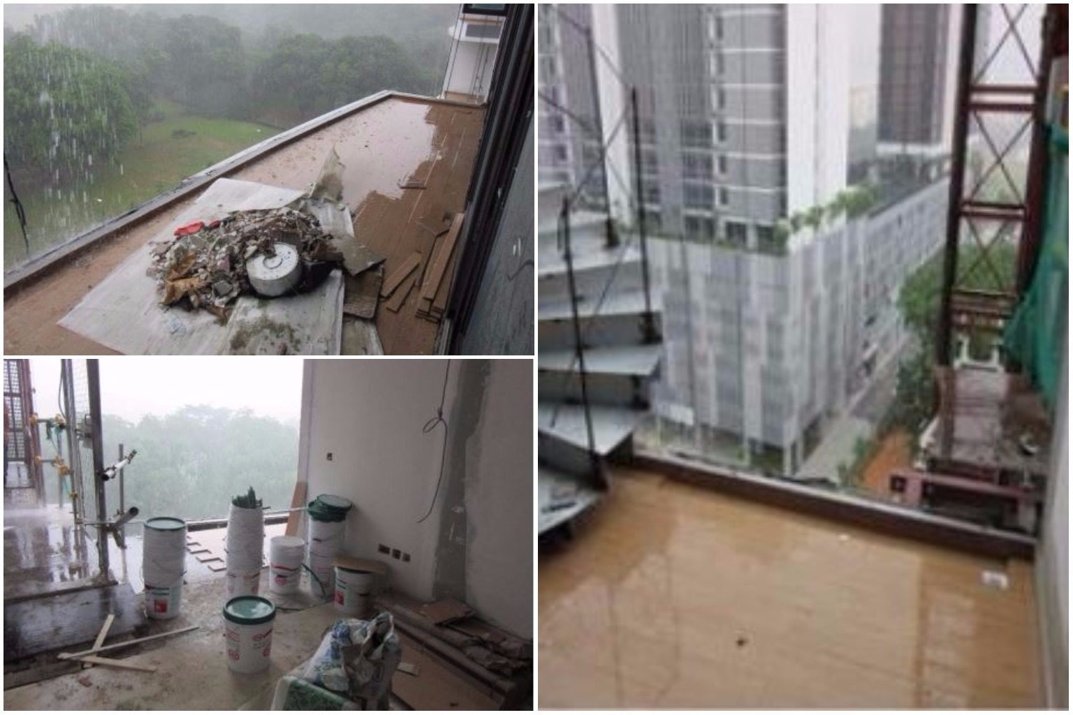 Clockwise from top left: Open sites without guard-rails or barriers, staircases without handrails and poor housekeeping were some of the lapses found at the worksite.
