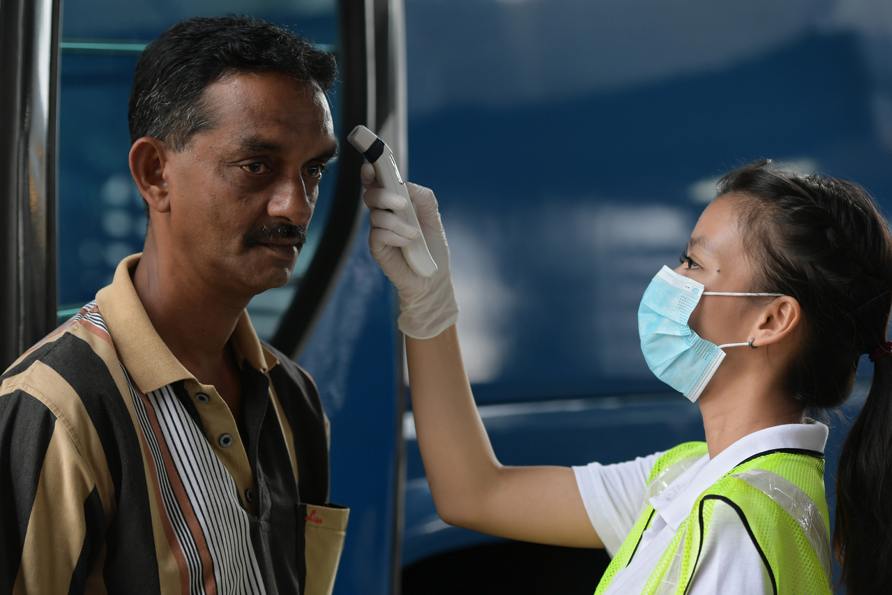 A bus driver having his temperature checked at the Woodlands Checkpoint on Feb 1, 2020.