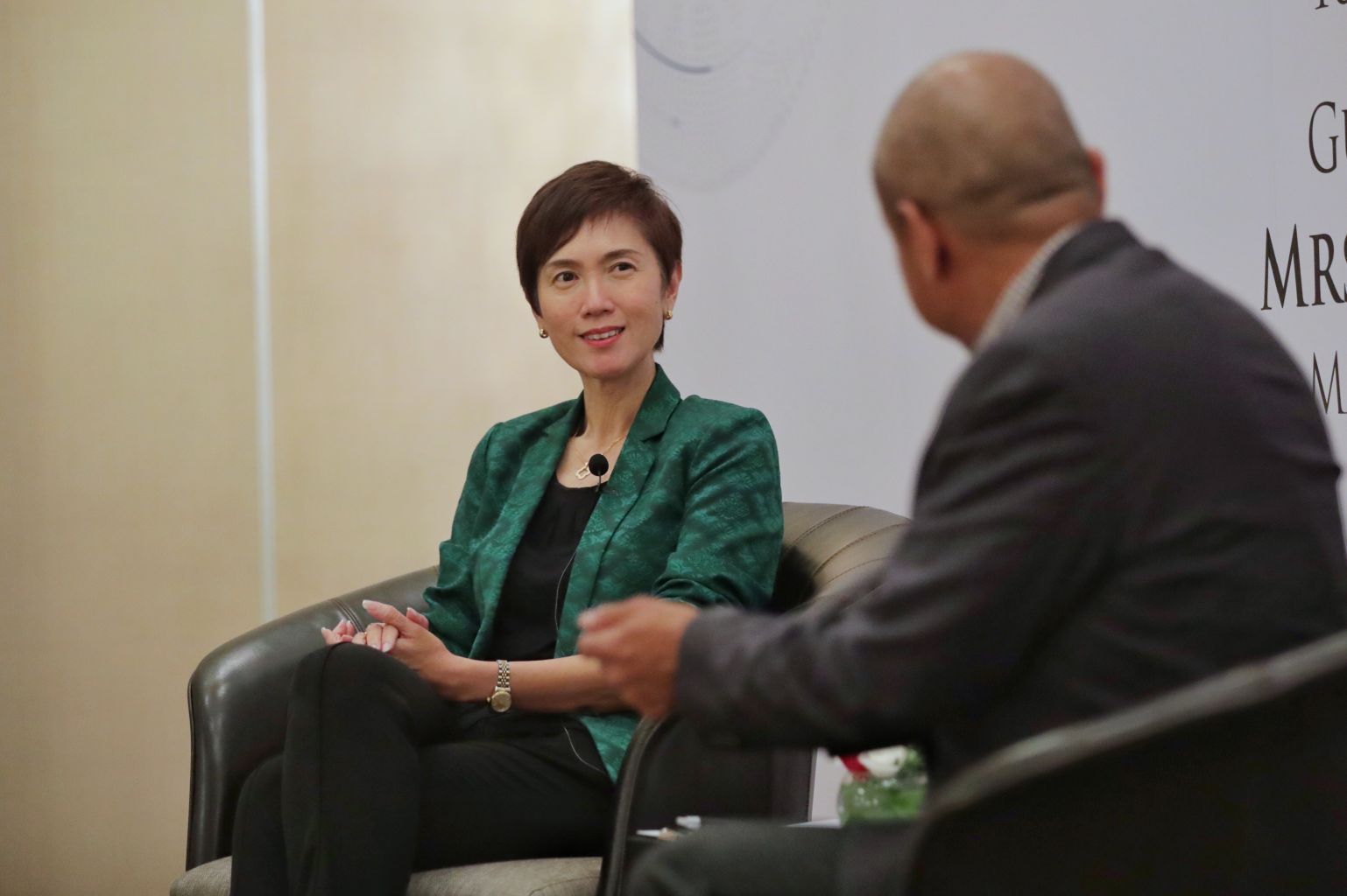 Mrs Teo in a dialogue with moderator Kenneth Paul Tan, Associate Professor at the Lee Kuan Yew School of Public Policy, during the event.
