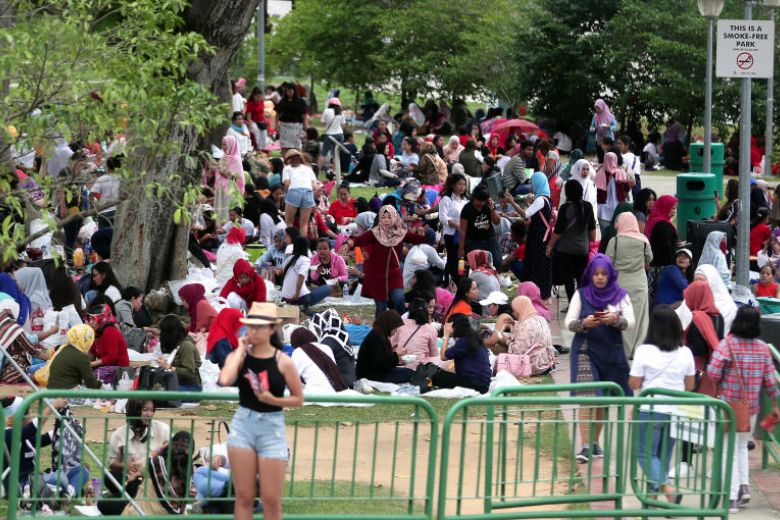 MOM singled out places frequented by migrant workers, including City Plaza in Paya Lebar, where Indonesian maids, among others, are seen, and Lucky Plaza in Orchard Road, popular with Filipino maids on their days off.