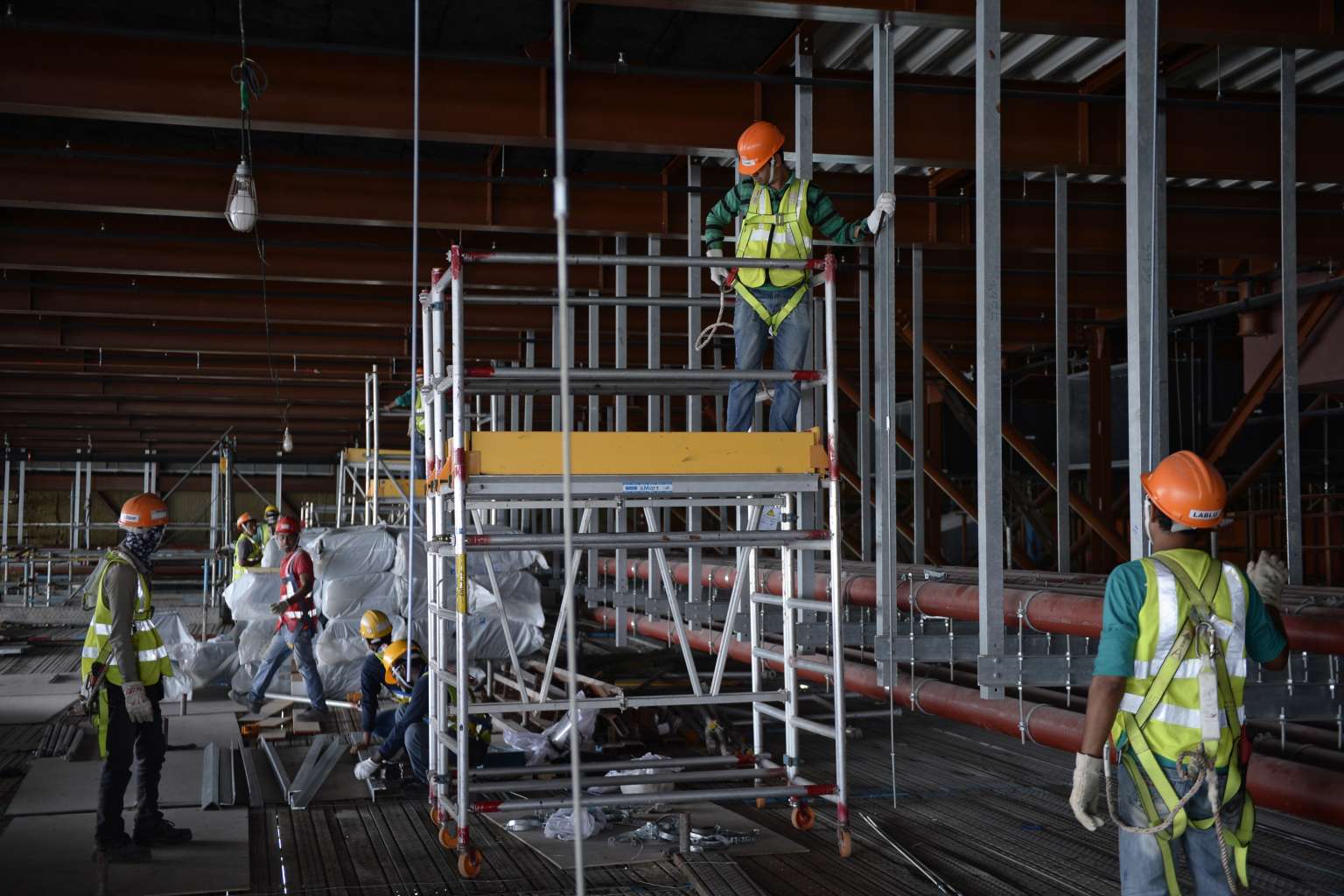 Construction workers pictured at a construction site at Changi Airport Terminal 4.