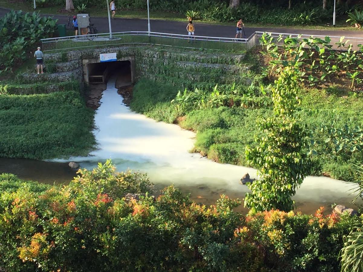 A white liquid was spotted flowing out of Kallang River at Bishan-Ang Mo Kio Park on Saturday.