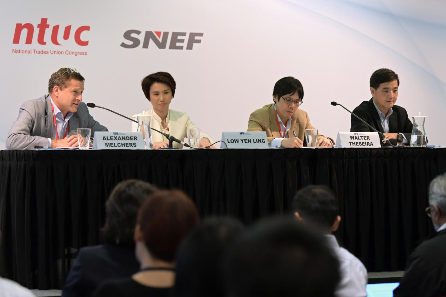 (From left) Singapore National Employers Federation vice-president Alexander Melchers, Senior Parliamentary Secretary for Manpower and Education Low Yen Ling, Nominated MP Walter Theseira and NTUC deputy secretary-general Heng Chee How at an IPS Forum on older workers.