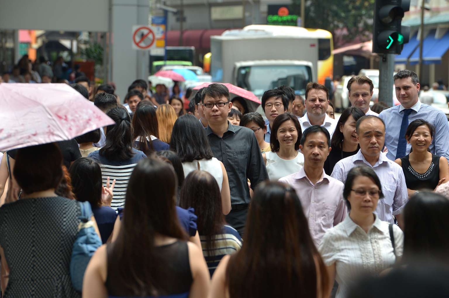 The office crowd in the Central Business District in Singapore.