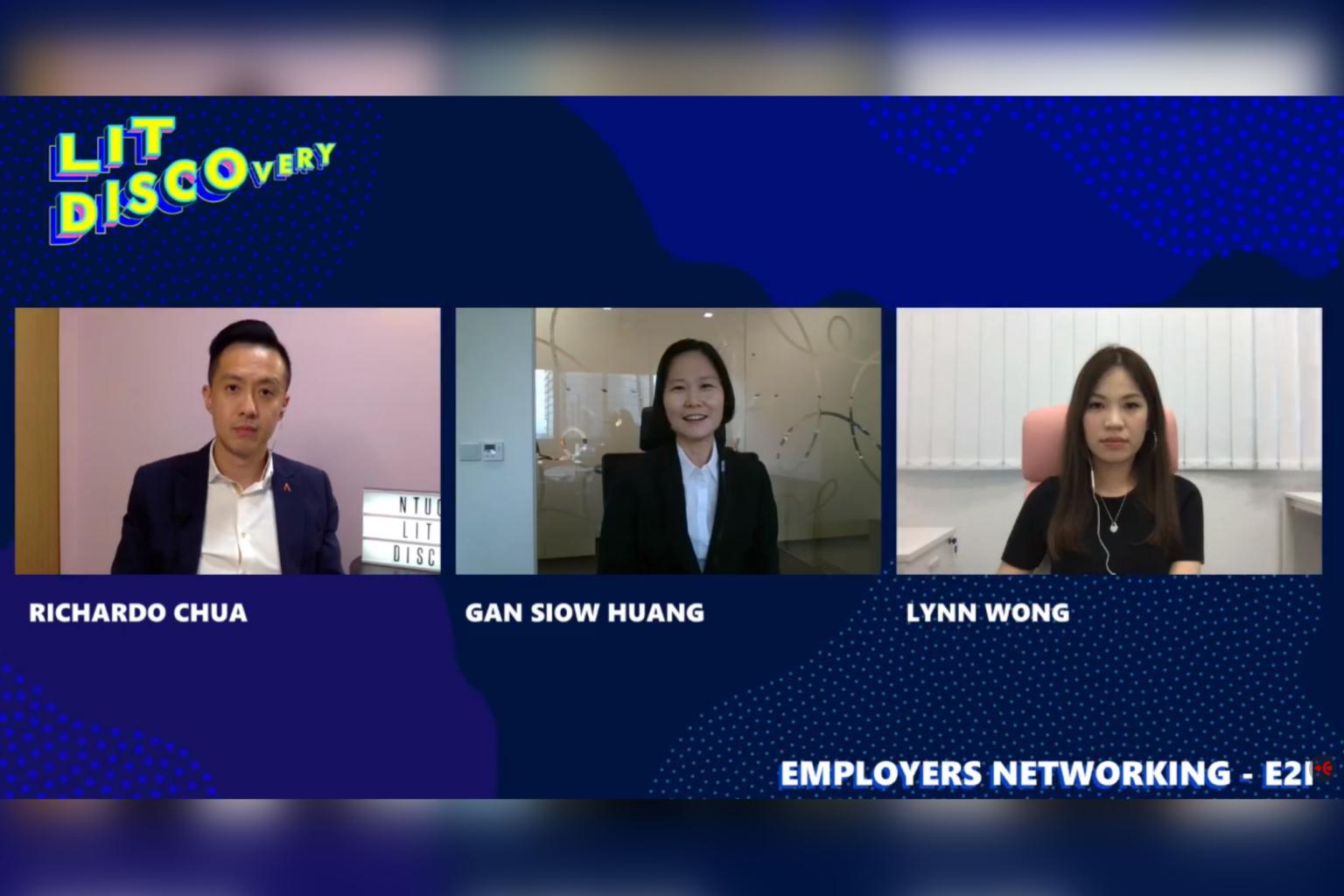 (From left) Moderator Richardo Chua, NTUC's e2i deputy chief executive Gan Siow Huang and FirstCom Solutions general manager Lynn Wong on June 10, 2020.
