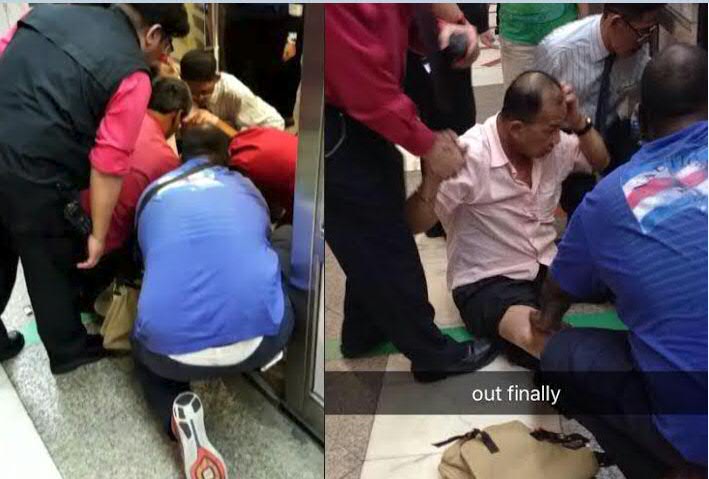 The man, who was in his 50s, had his right leg wedged between the train and the platform said the Singapore Civil Defence Force (SCDF).