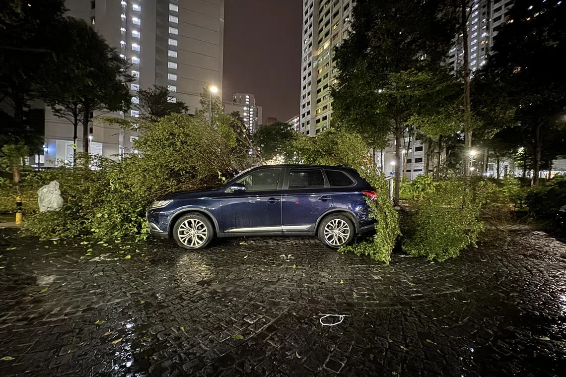 Photos and videos seen by ST show fallen trees in various locations in Singapore, including Beach Road, Xilin Avenue, Jalan Membina, on the Pan-Island Expressway before the Bukit Timah Expressway exit, and on the Central Expressway near the Yio Chu Kang Flyover.