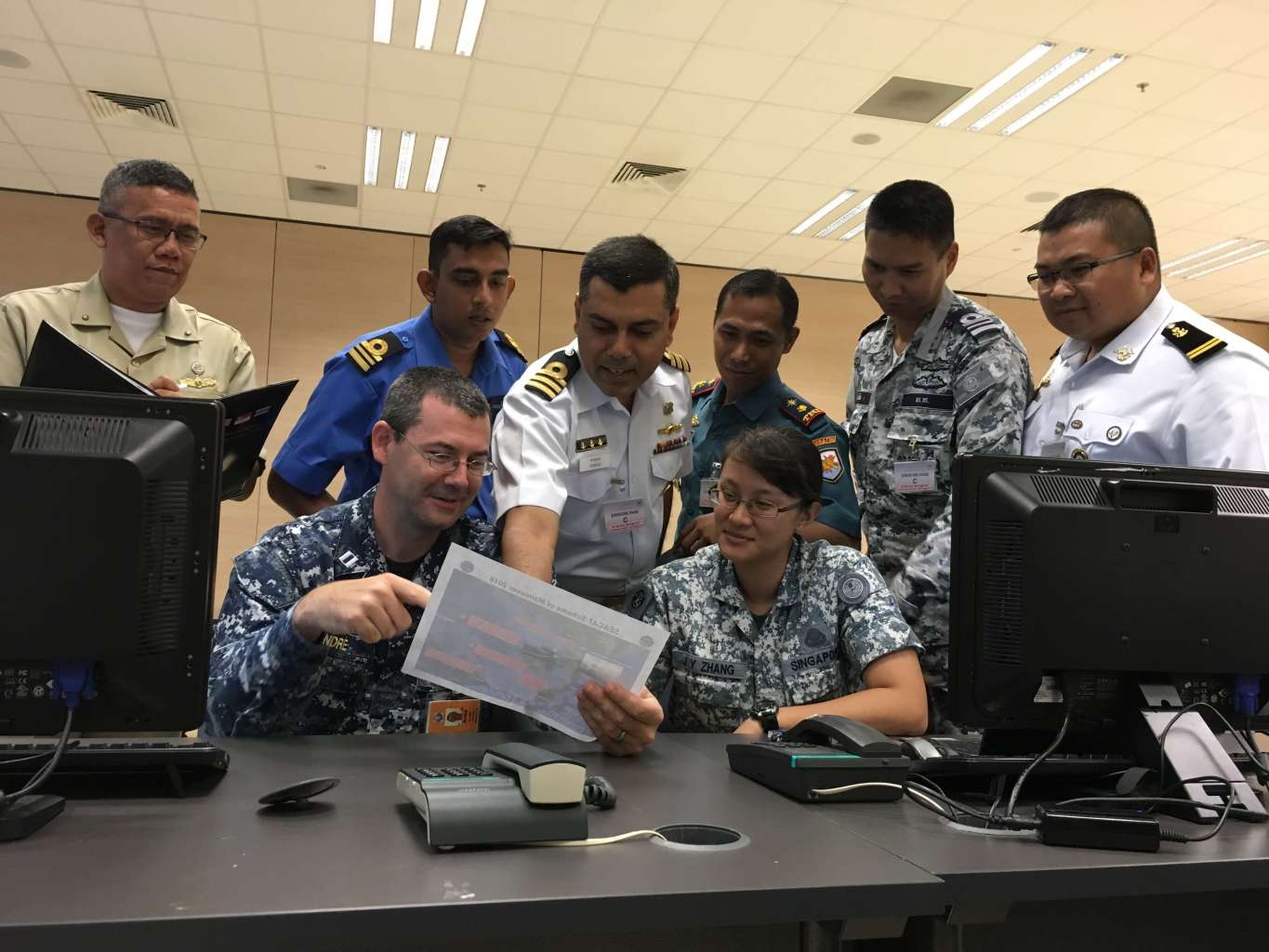 Participants of this year's Seacat exercise at the Multinational Operations and Exercises Centre at the Changi Command and Control (C2) Centre in Changi Naval Base.