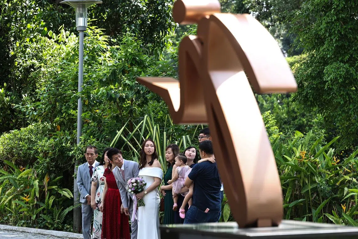 A couple getting married must be in Singapore to go through the virtual solemnisation.
