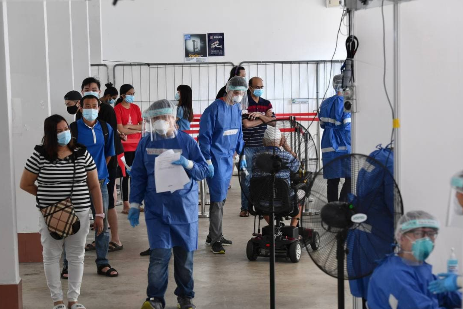 Residents of Block 745 Yishun Street 72 queueing for their mandatory Covid-19 swabs.