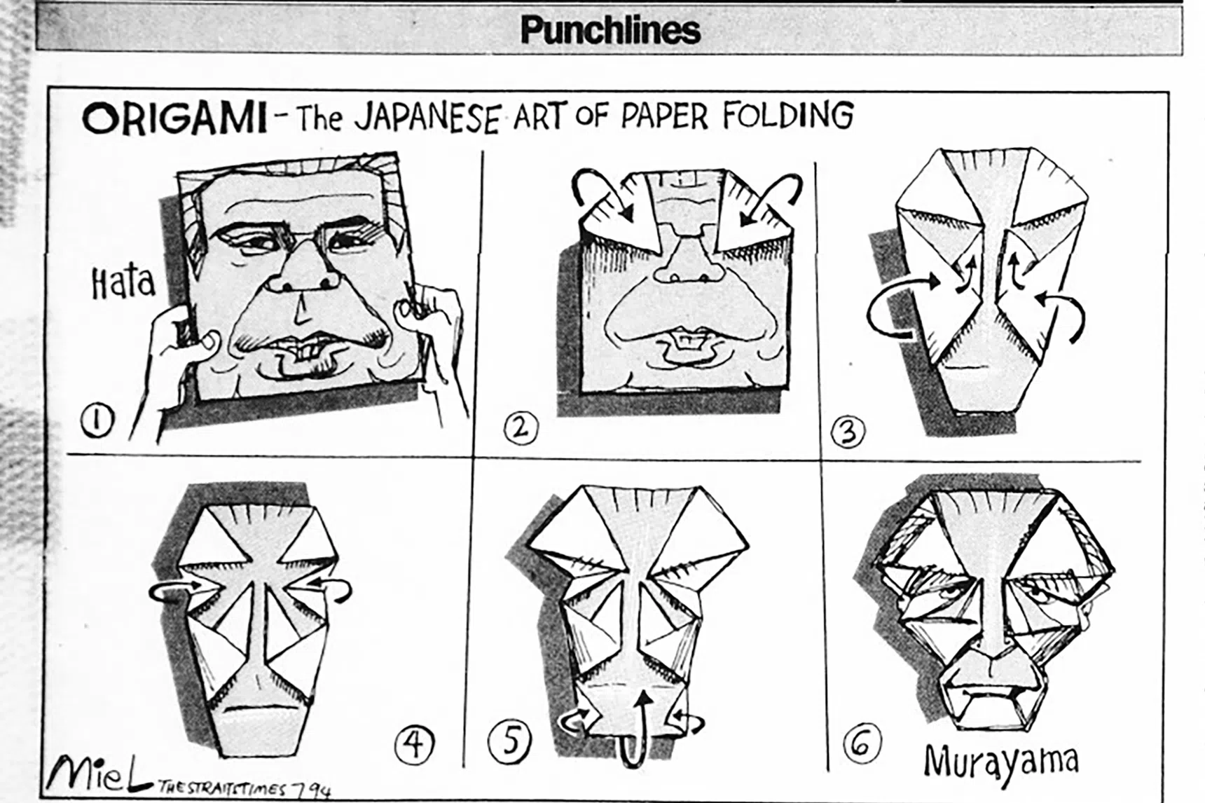 Cartoonist Miel joined The Straits Times in 1992 and one of his first cartoons was on the changeover of prime ministers within two months in Japan, drawn as an origami. It won him an in-house annual award.
