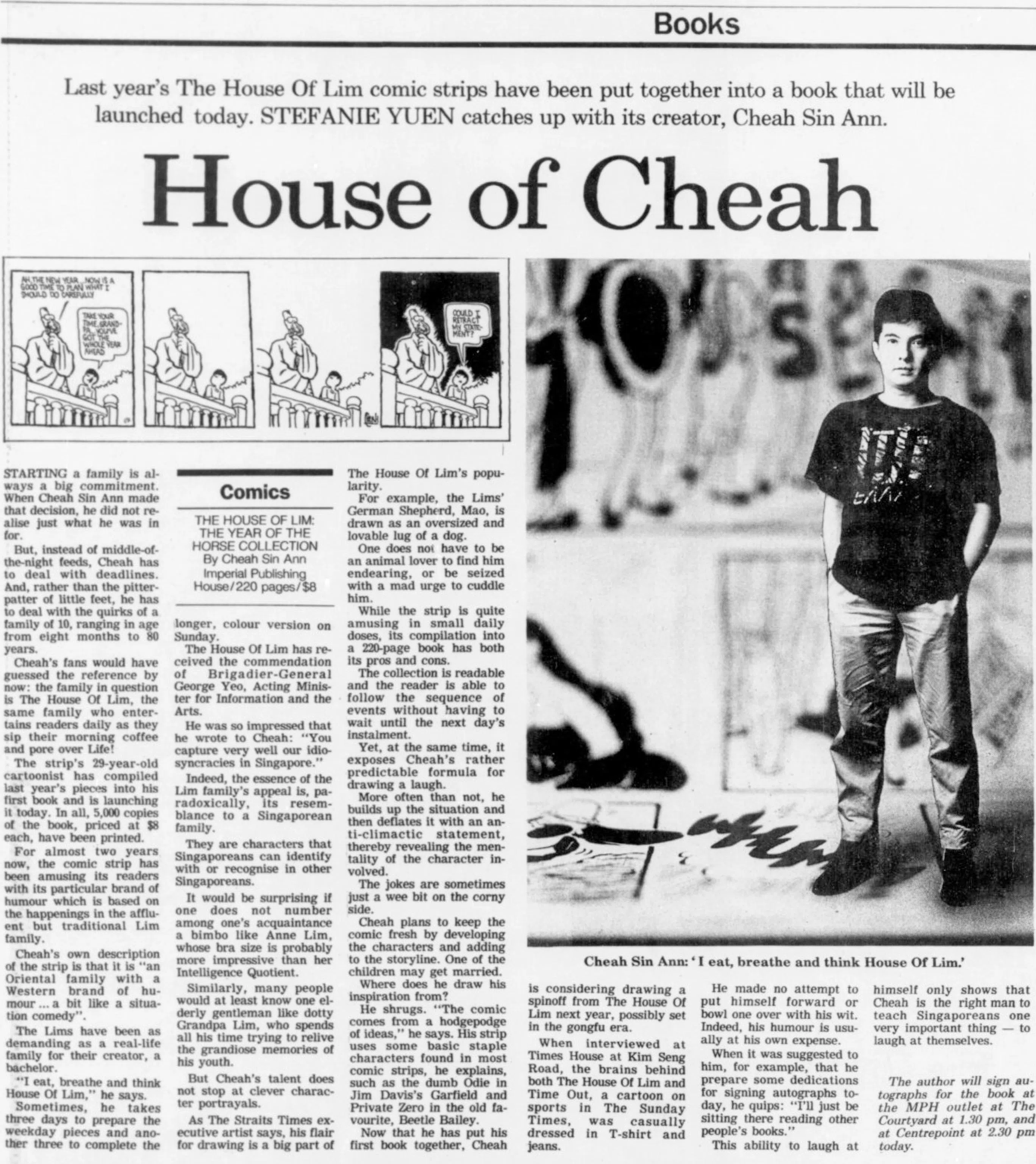 In an environment where political cartooning had boundaries, comic strips like “The House Of Lim” offered another form of commentary. The daily strip by Cheah Sin Ann ran for eight years straddling the 1980s and 1990s. It featured a relatable Singaporean family spanning three generations and its appeal lay not just in the familiar characters but also how he would build up a situation only to end with an unexpected punchline.