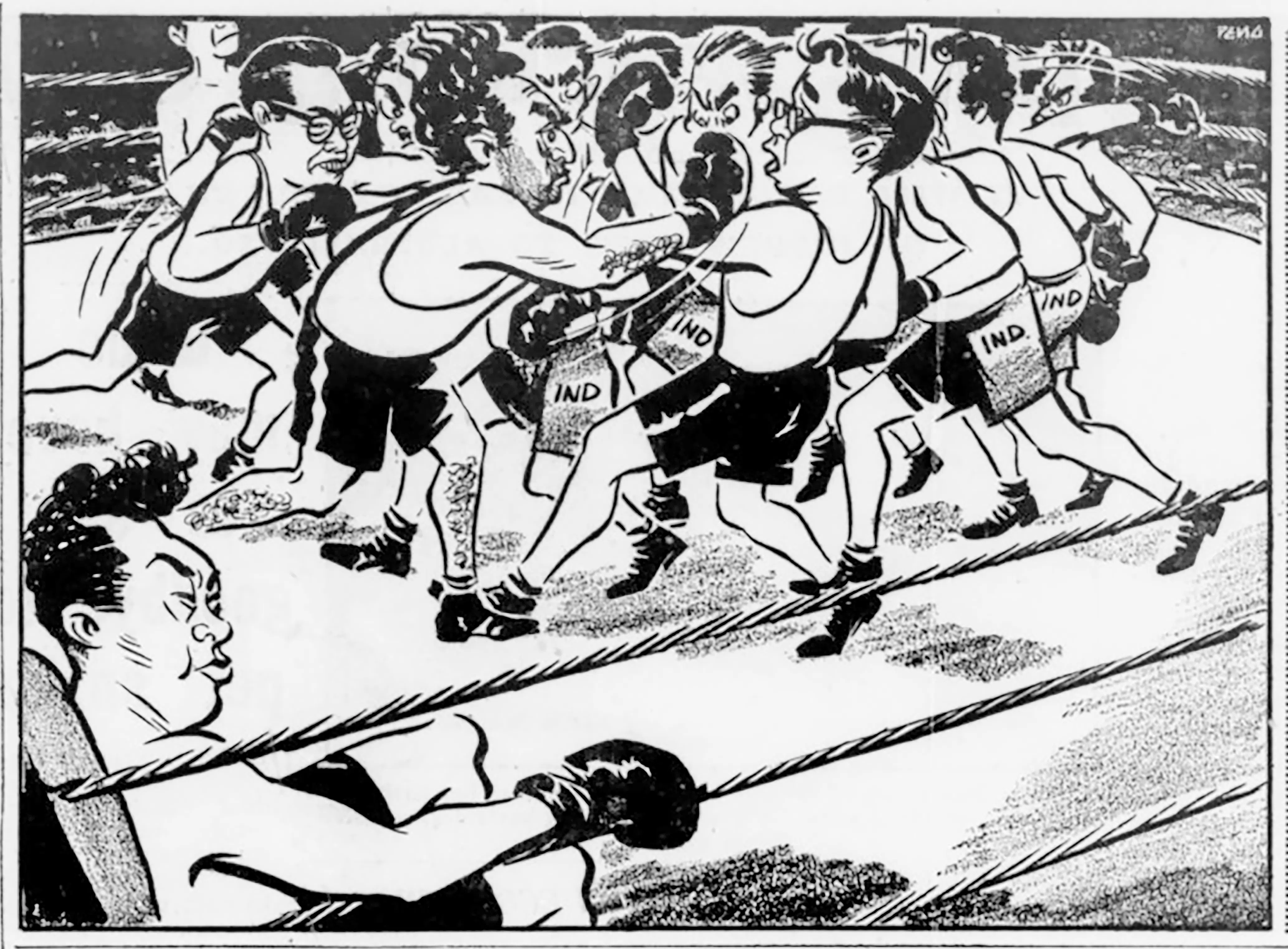 A key figure then was cartoonist Tan Huay Peng, known for his sharp social commentary. Mr Lim highlights a May 2, 1959, cartoon by Mr Tan that used boxing imagery to represent the fierce election campaigning that year.