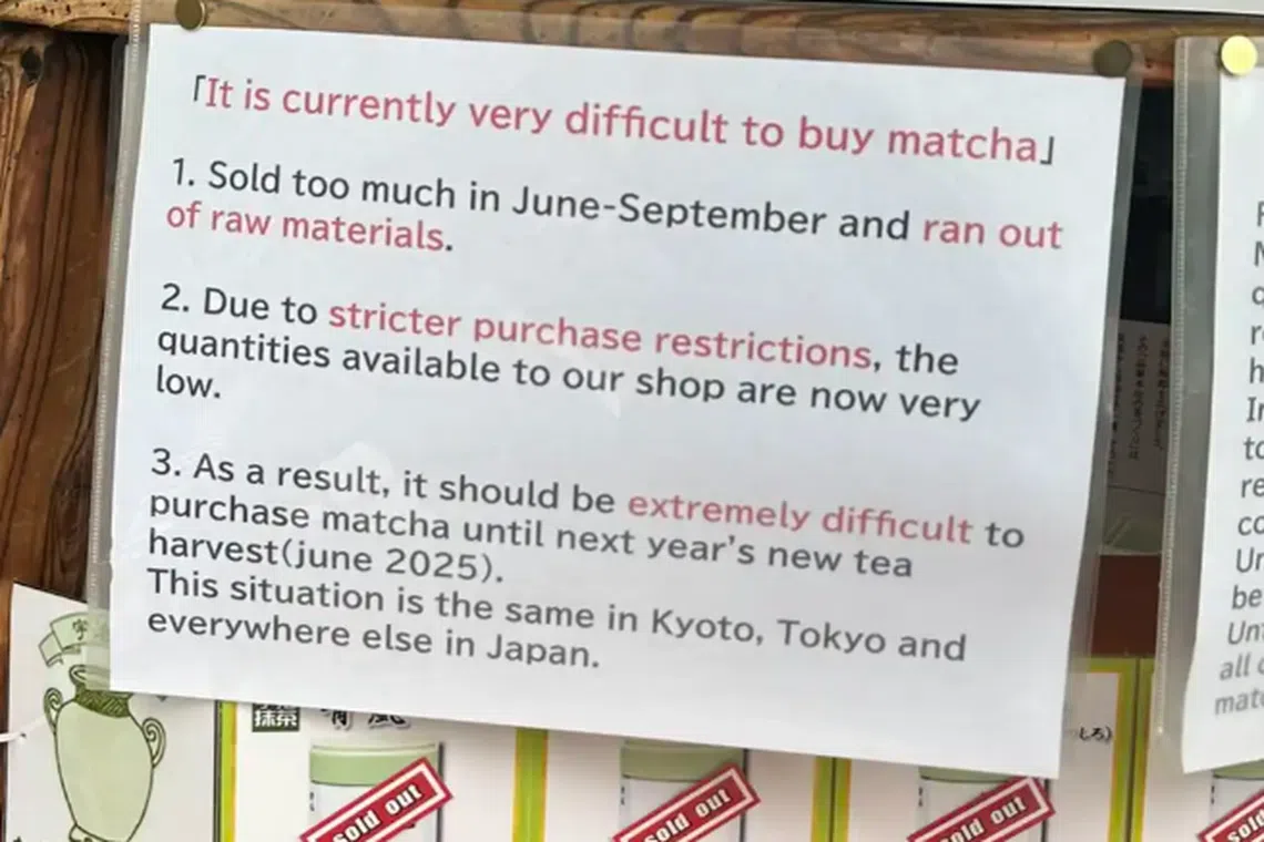 The group also advised against hoarding matcha, as it has a short shelf life.