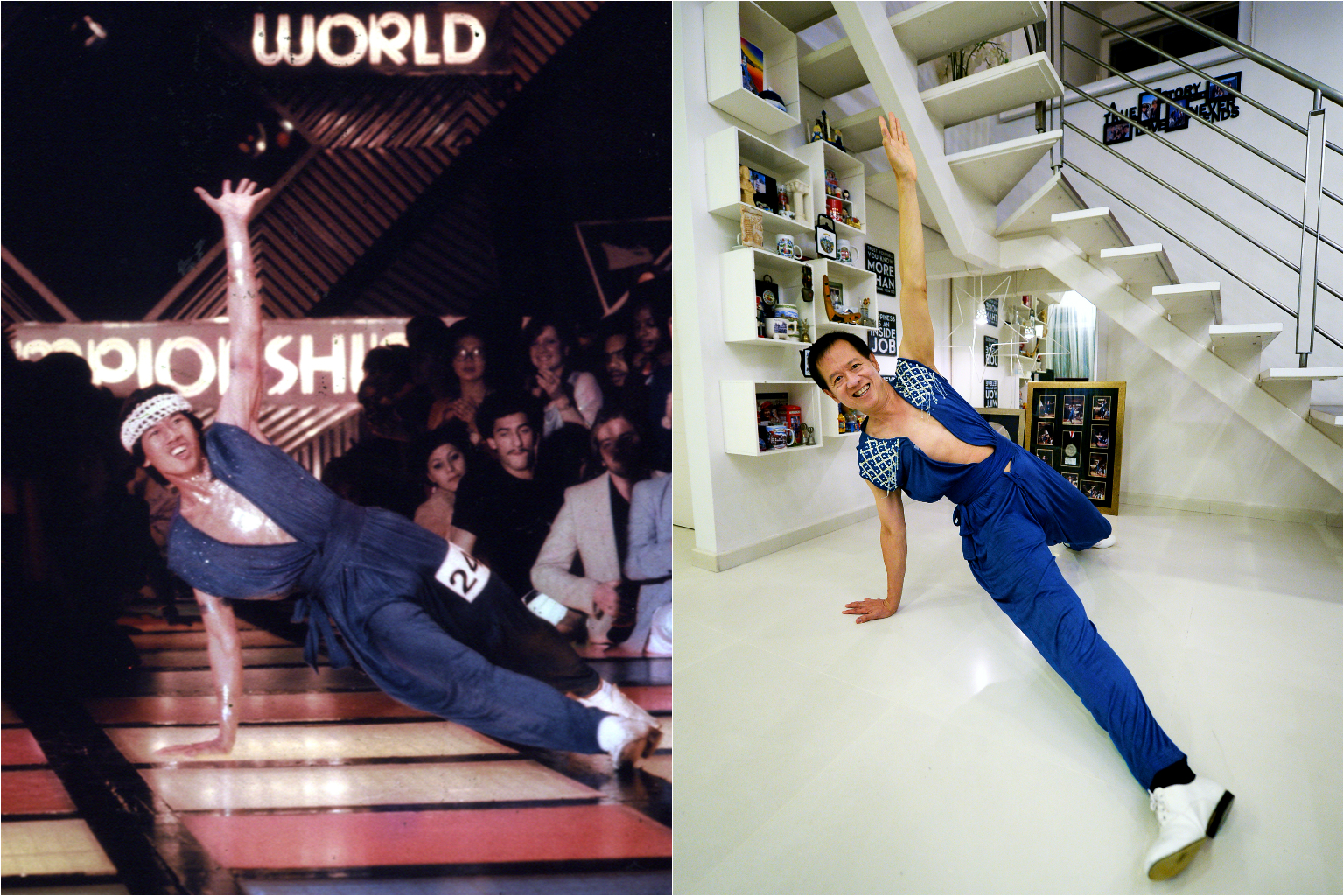 Mr Raymond Chong at the EMI World Disco Dancing Championship in 1980 (left) and now.