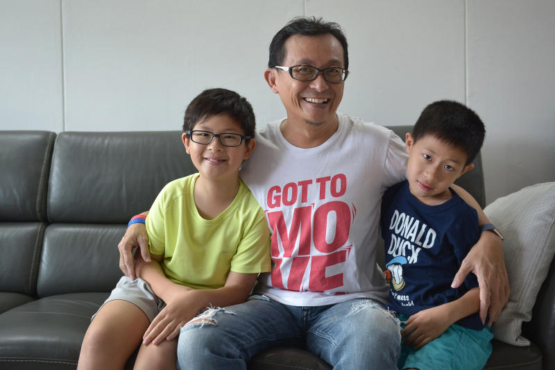 Mr Kelvin Seah decided to quit last year and work from home so he could look after his two sons, Jaedon, 10, (left) and Caleb, eight.