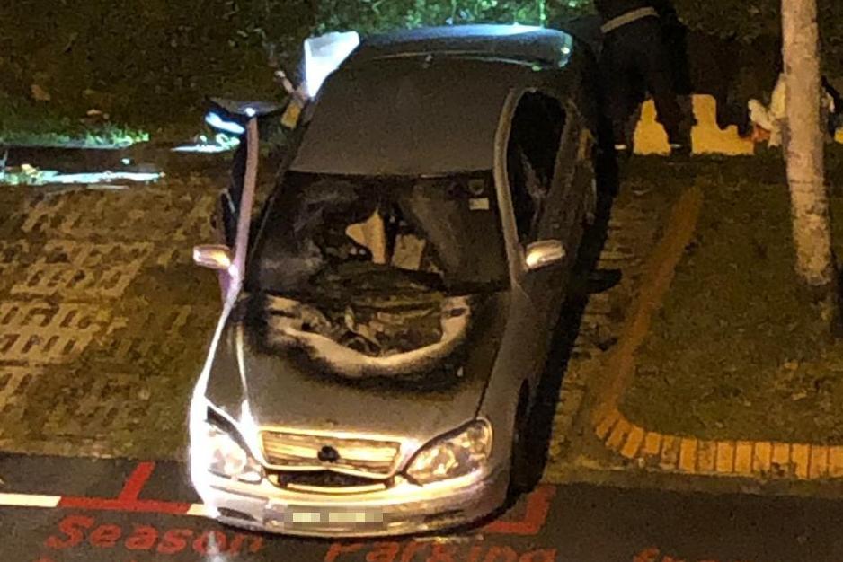 SINGAPORE - A silver Mercedes-Benz parked at a Housing Board carpark in Sin Ming Avenue burst into flames on Thursday night (June 13), taking residents by surprise.