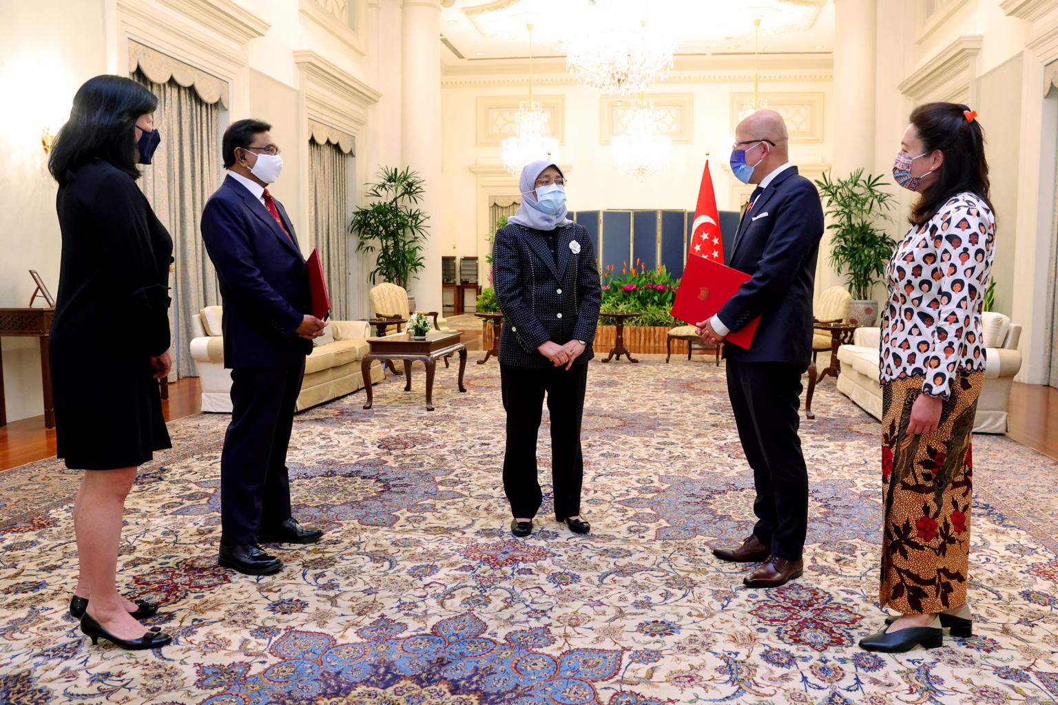 President Halimah Yacob presented the Letters of Credence to both men at the Istana.