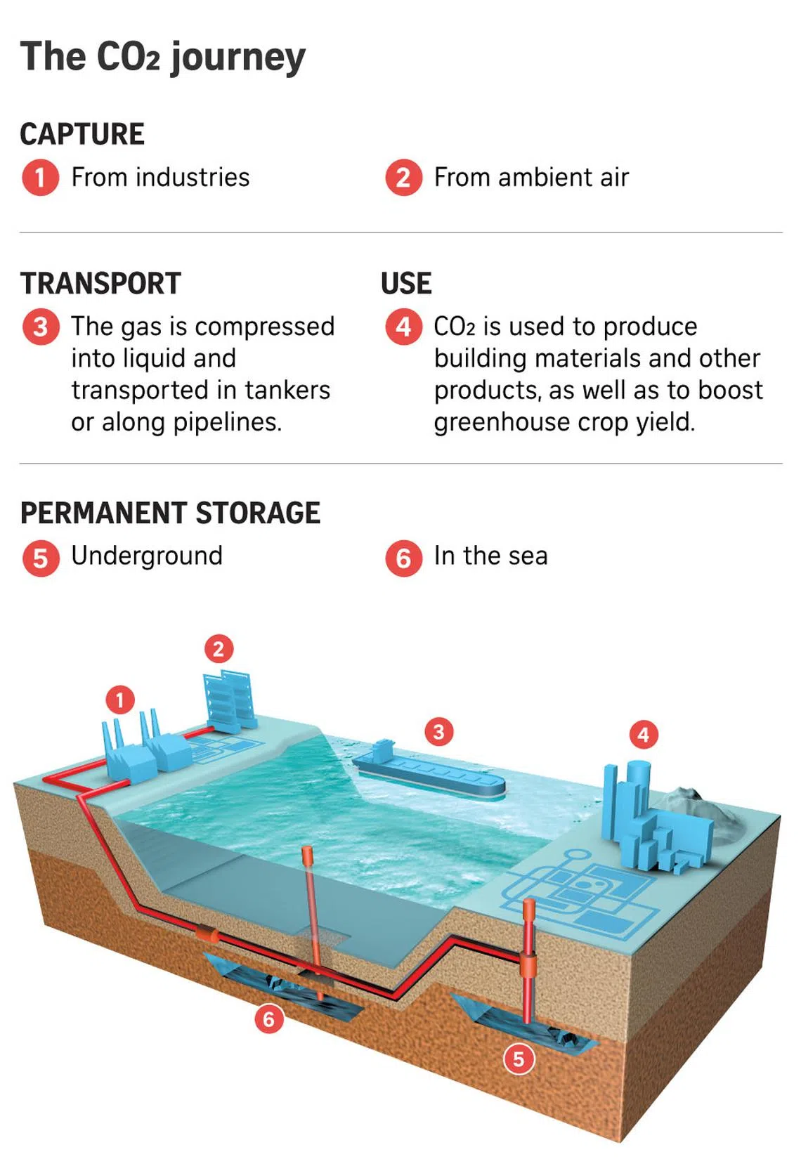 Aside from capturing emissions from carbon-intensive sectors, direct air capture technology, which uses chemical reactions to pull CO2 out of the air, is also coming to the forefront.