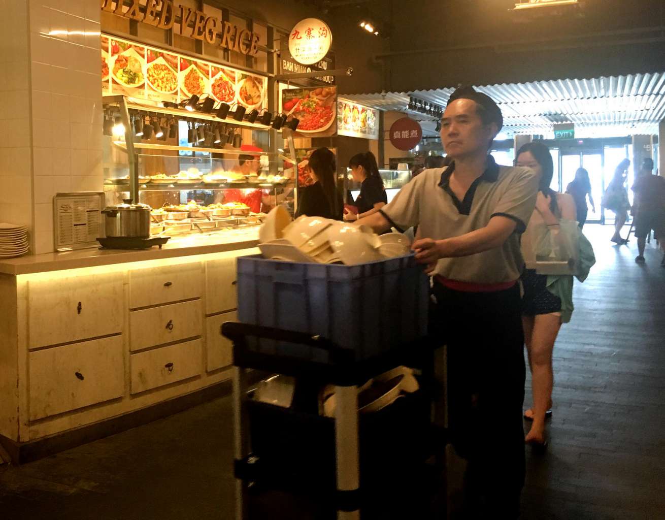 Part-time foodcourt cleaner Png Lye Heng working in the Jem foodcourt, on June 6, 2016.