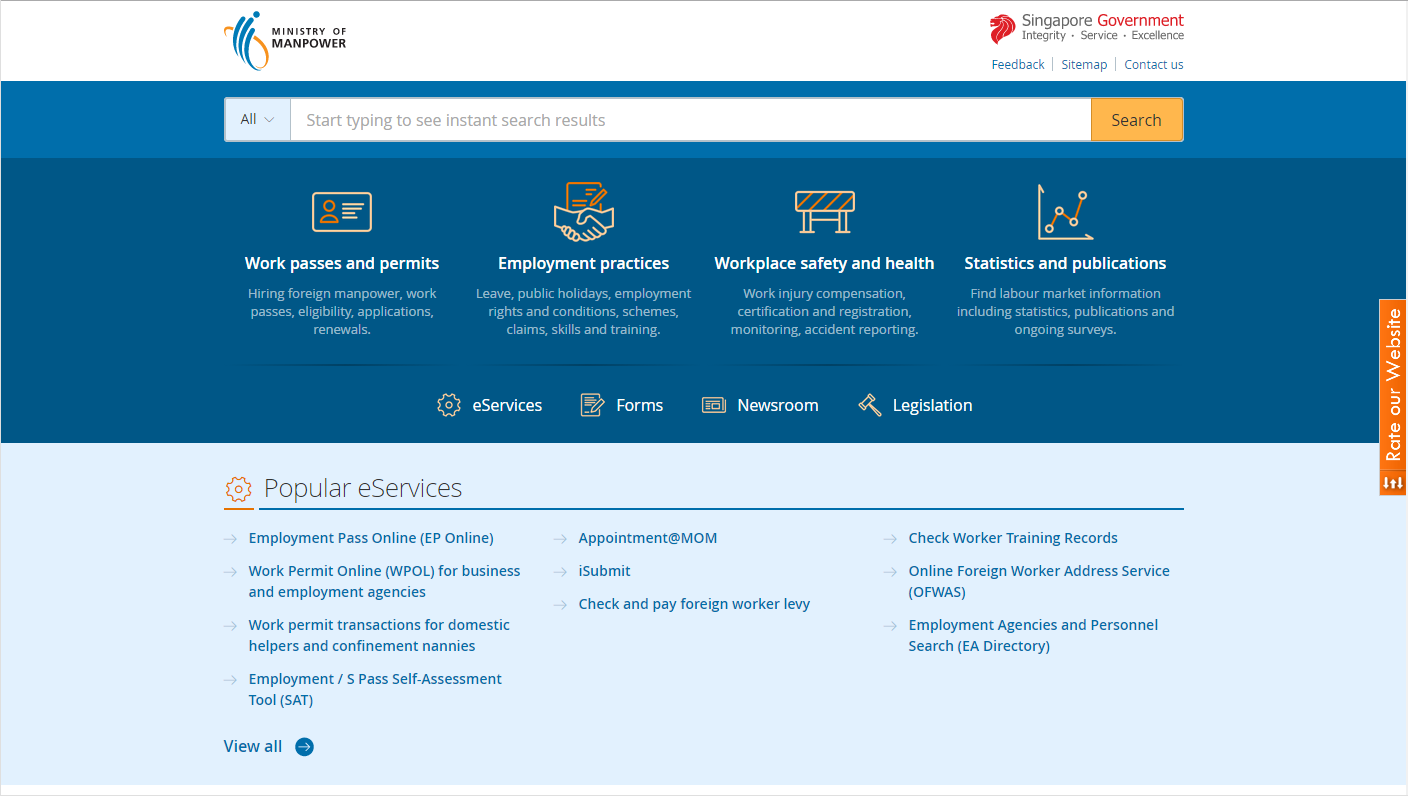 The official Ministry of Manpower website (pictured) is at www.mom.gov.sg. (http://www.mom.gov.sg.)