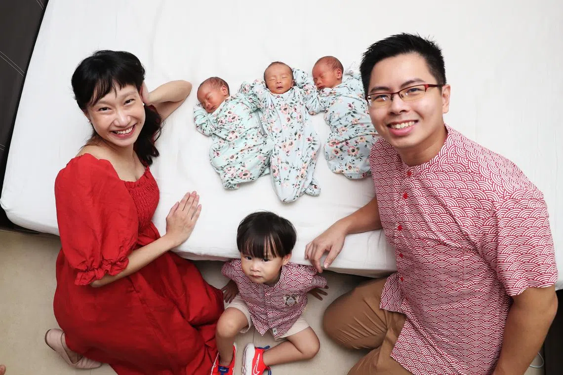 They were shocked to learn that they were expecting triplets, they told The Straits Times in an earlier interview shortly after the triplets were born on Jan 3.
