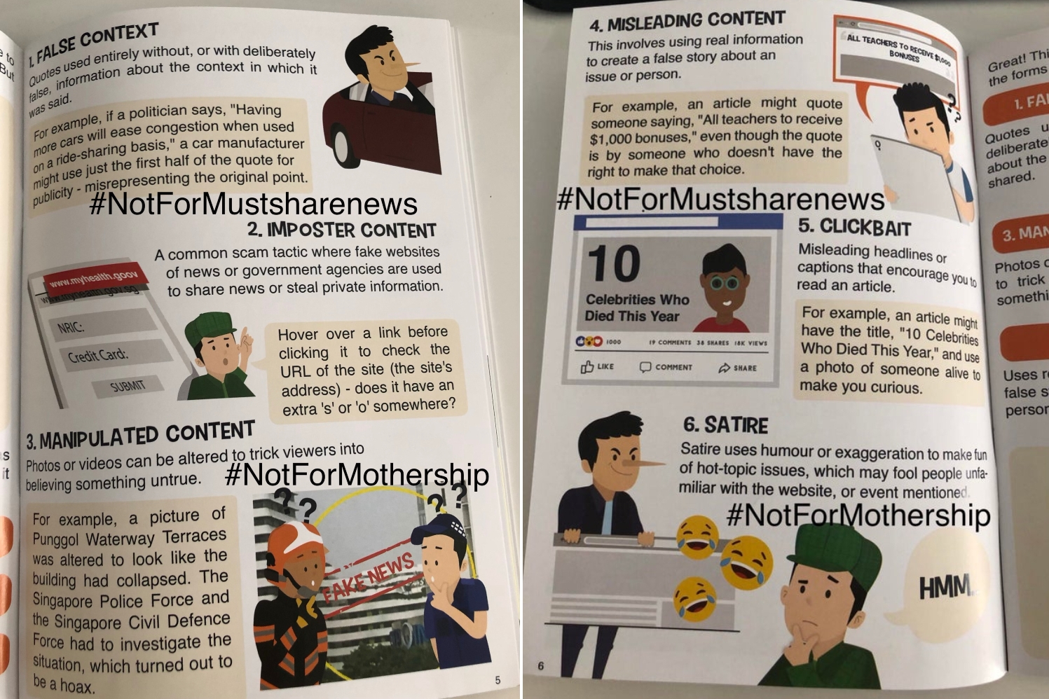 Besides listing satire as a form of "fake news", the booklet also said that satire uses humour or exaggeration to make fun of hot-button issues, which may "fool people unfamiliar with the website, or event mentioned".