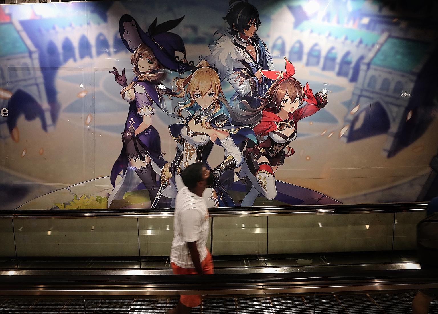 A mural advertisement for the mobile game Genshin Impact at Serangoon interchange in October. The growing presence of such ads reflects the rising profitability of mobile games and the fortunes of their developers.