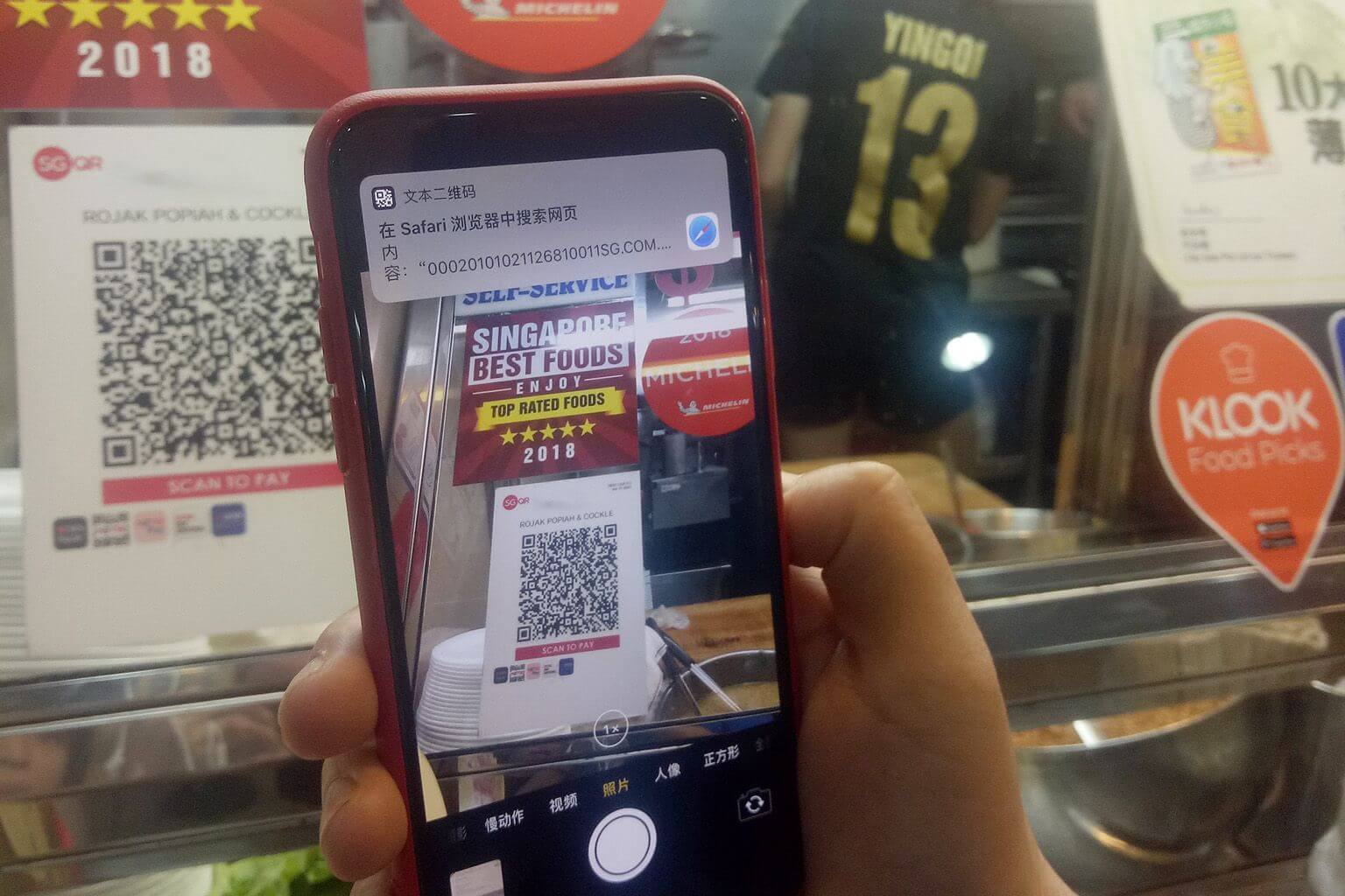 A patron using SGQR to pay at a food stall. McKinsey consultants said in May that seven in 10 Singaporeans use a digital wallet and transaction volumes are growing daily.