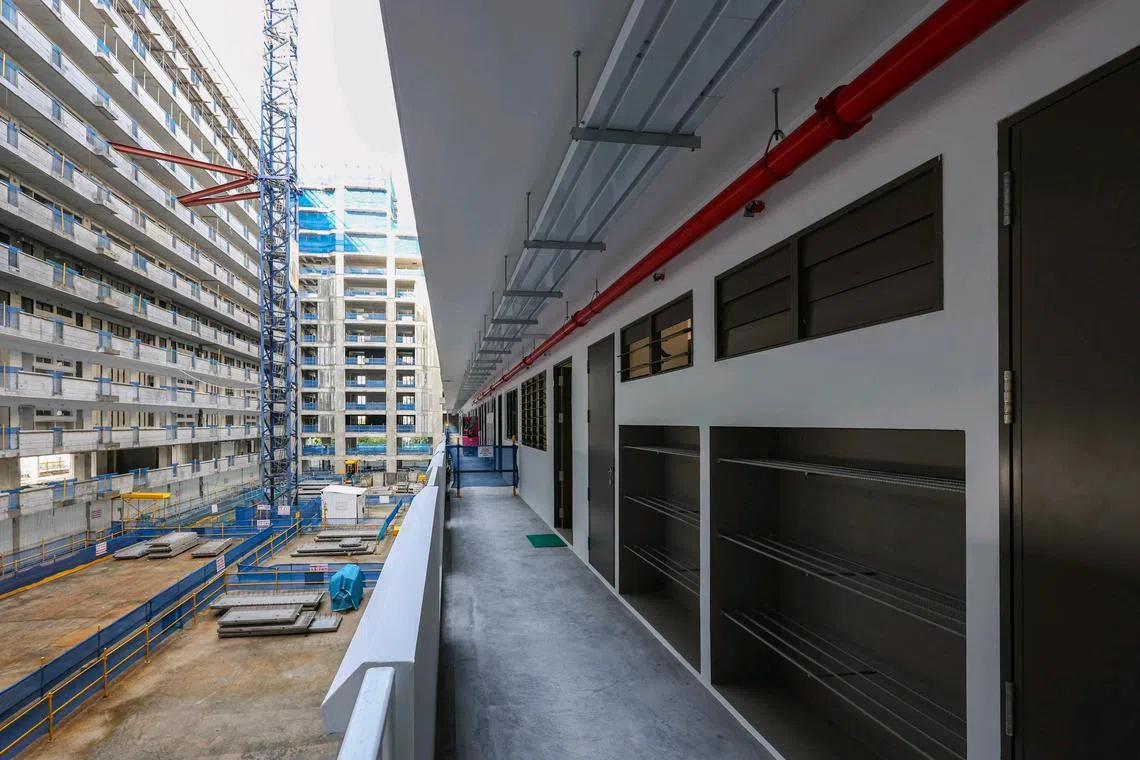 An overview of the corridor space in MOM’s purpose-built dormitory in Tukang Innovation Lane on Nov 17.