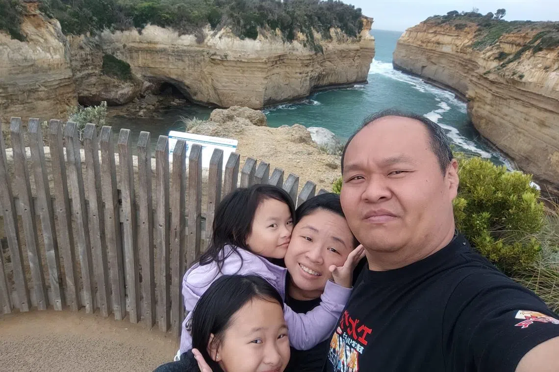 Car mechanic Edwin Sia on a road trip along Great Ocean Road with his family in December 2023.