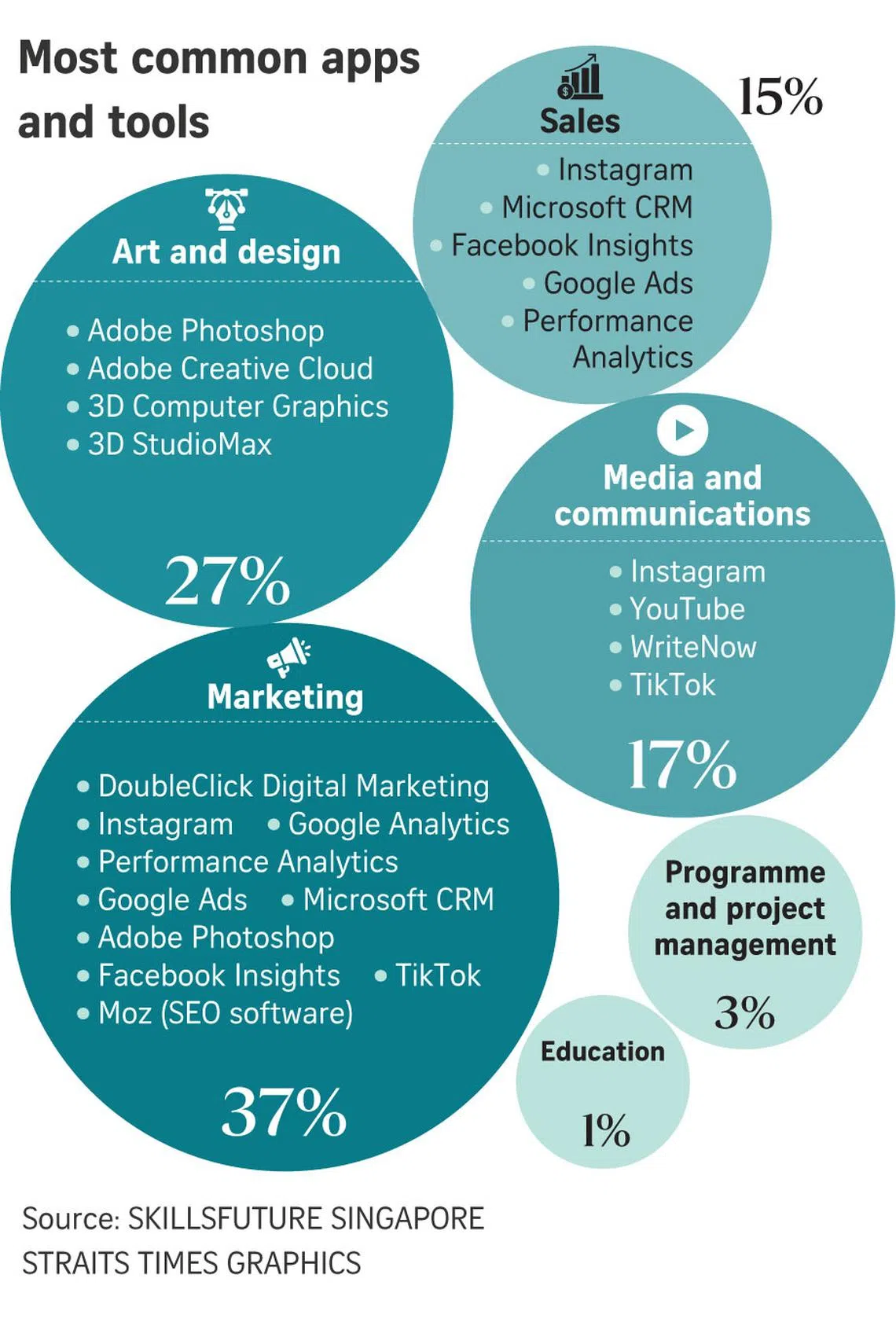 A report by SkillsFuture Singapore (SSG) that outlines priority skills and job roles in growth economies showed that 70 per cent of professionals in “non-creative” job roles require creative skills for work. Such jobs could be in areas such as information technology, engineering and business development.