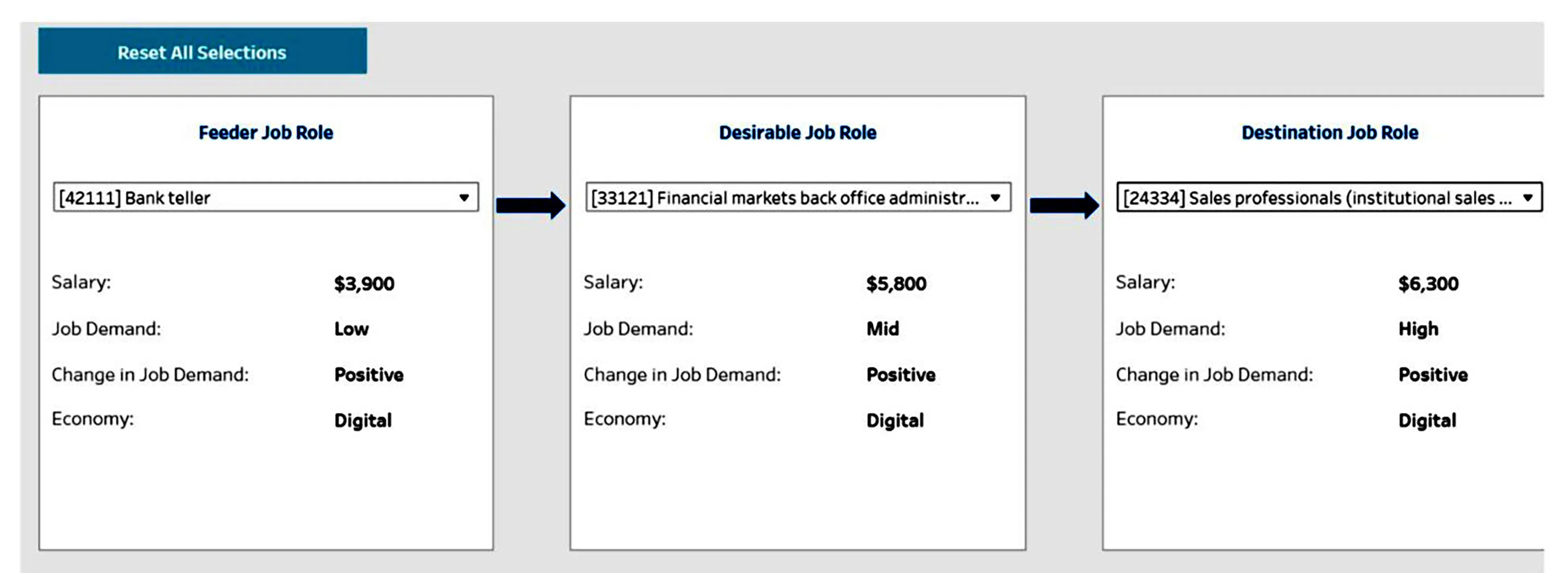 Said Mr Yeo: “When using the dashboard, users can better understand the factors at play. They can also see the upskilling pathways available if they want to move from one job to another.”