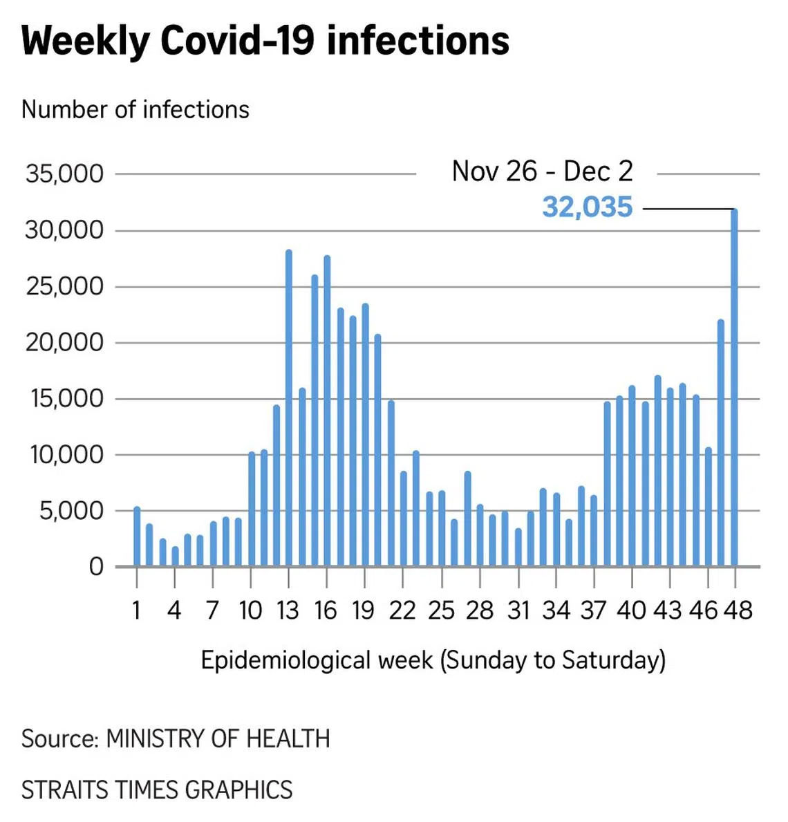 The ministry said the rise in cases “could be due to a number of factors, including waning population immunity and increased travel and community interactions during the year-end travel and festive season”.