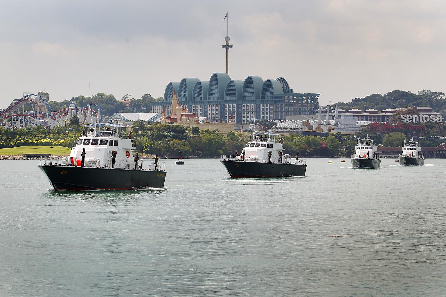 Coast Guard ships sailing just off the shore of Sentosa Island.
