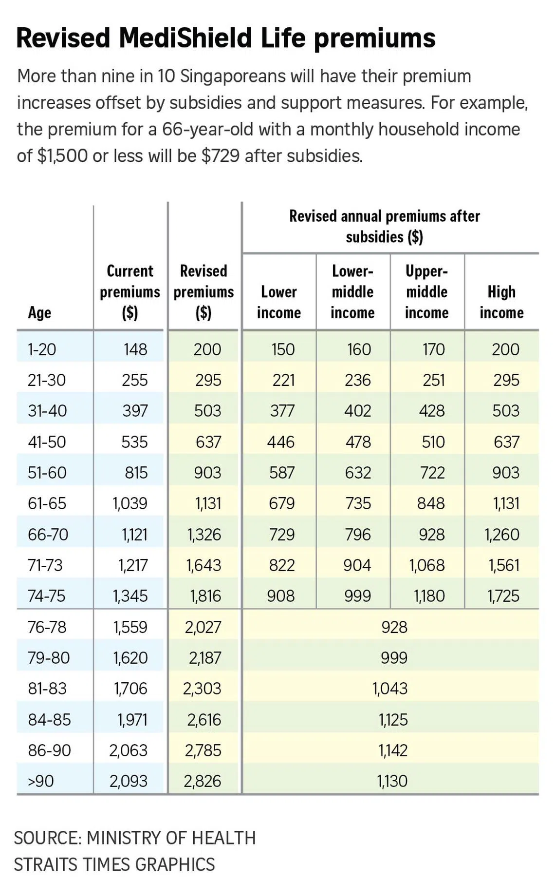 Lower- and middle-income Singaporeans in older age groups will see their premium subsidies increased by 5 to 10 percentage points.