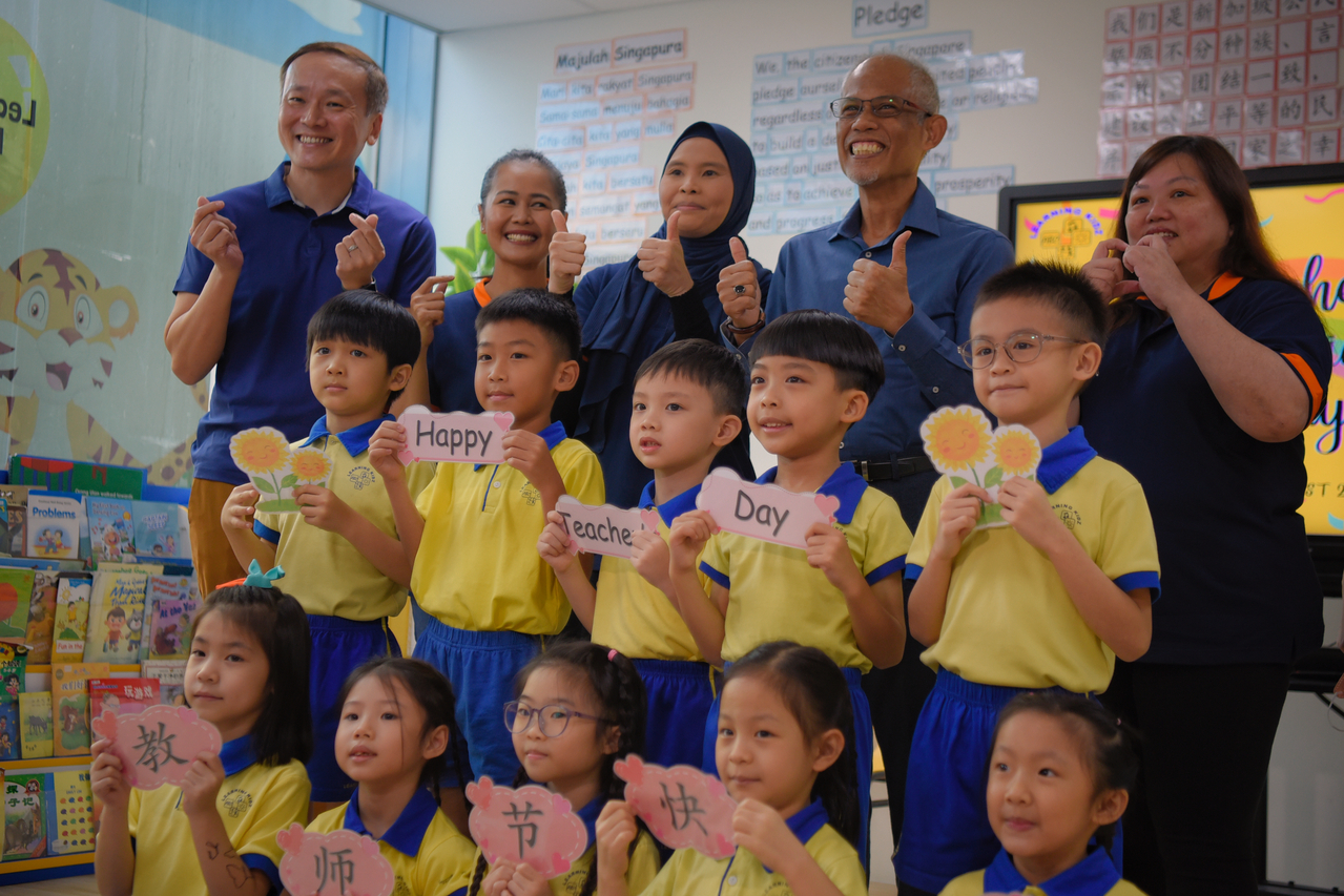 He was visiting pre-school Learning Kidz in Ang Mo Kio as part of the Early Childhood Development Agency's (ECDA) Teachers' Day celebration for pre-school educators.