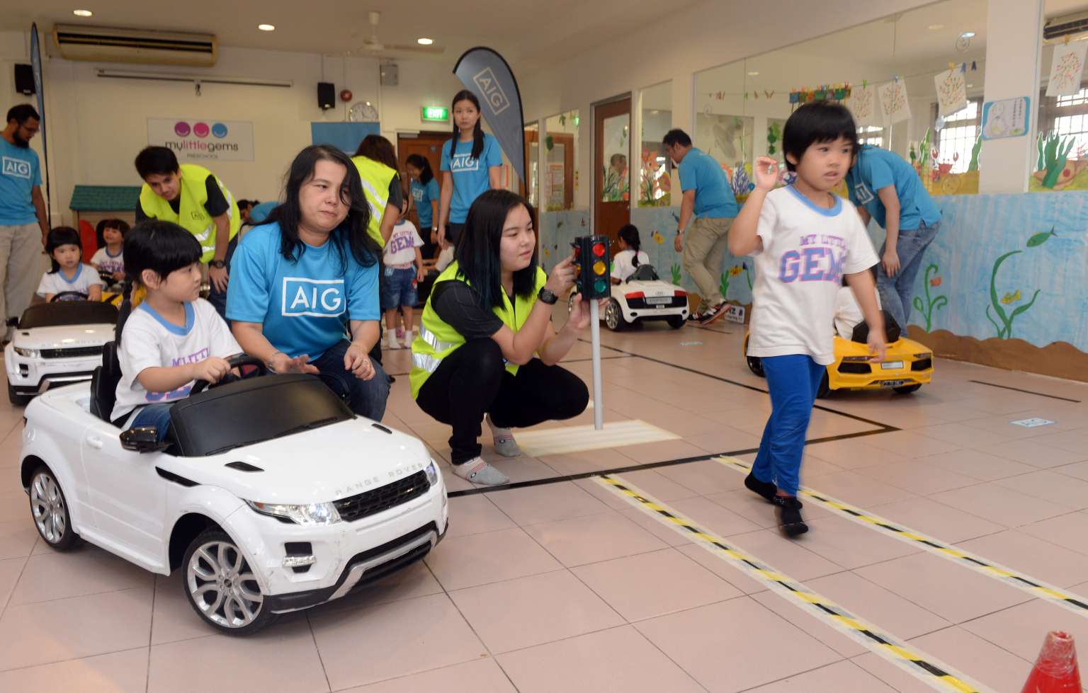Children learning how to use the road at the AIG road safety education programme on Feb 2 2015.