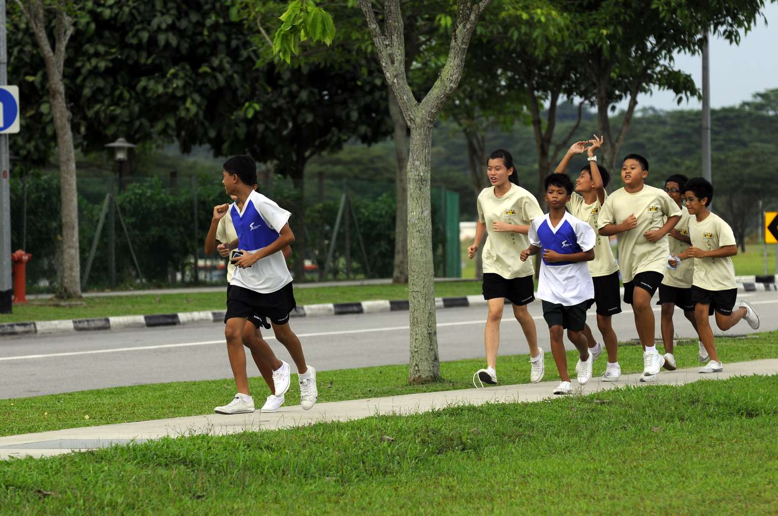 Members of the Christ Church Secondary School Outdoor Activity Club finishing a run.