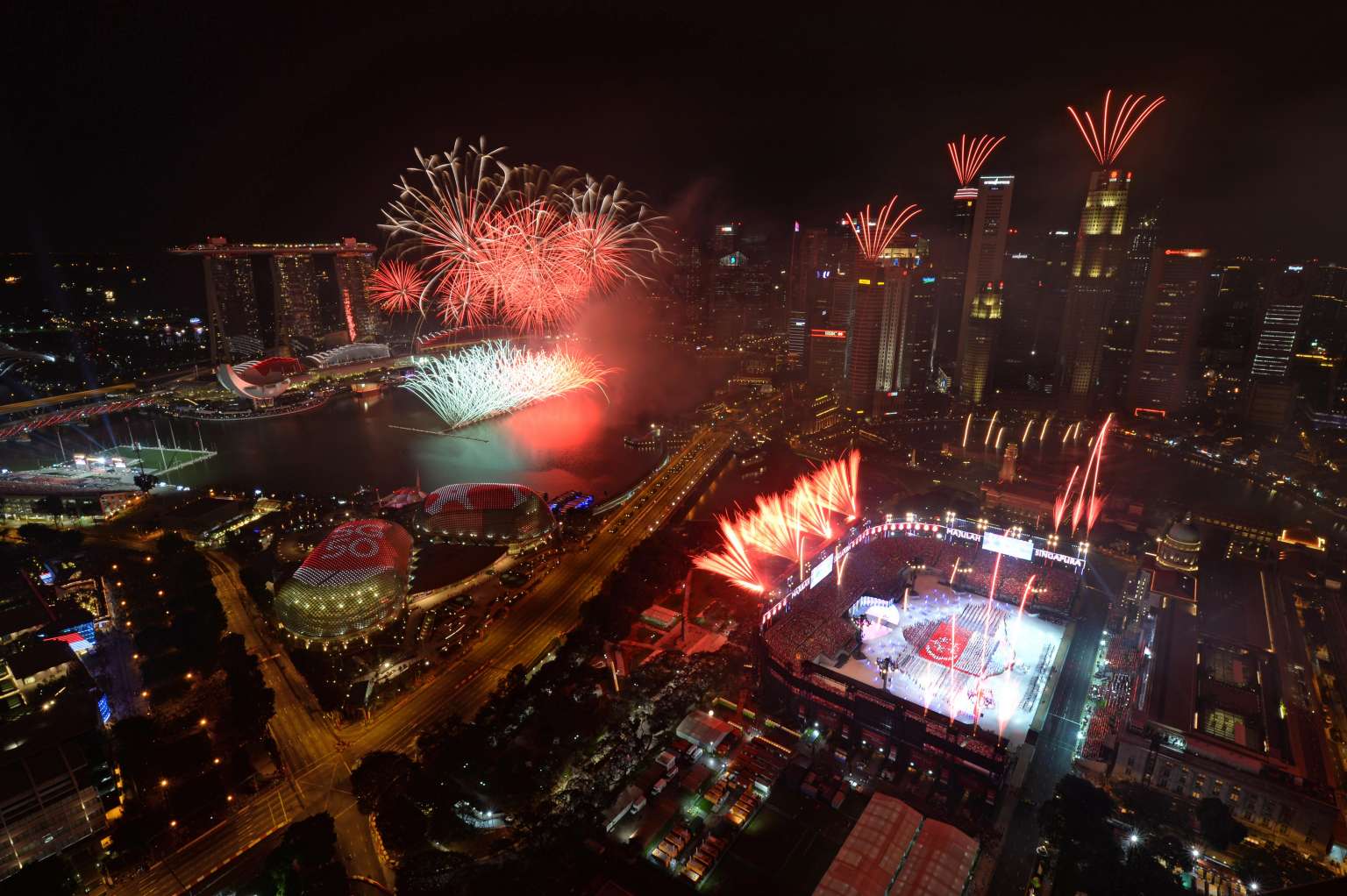 The fireworks display at the Padang during the National Day Parade on Aug 9, 2015.