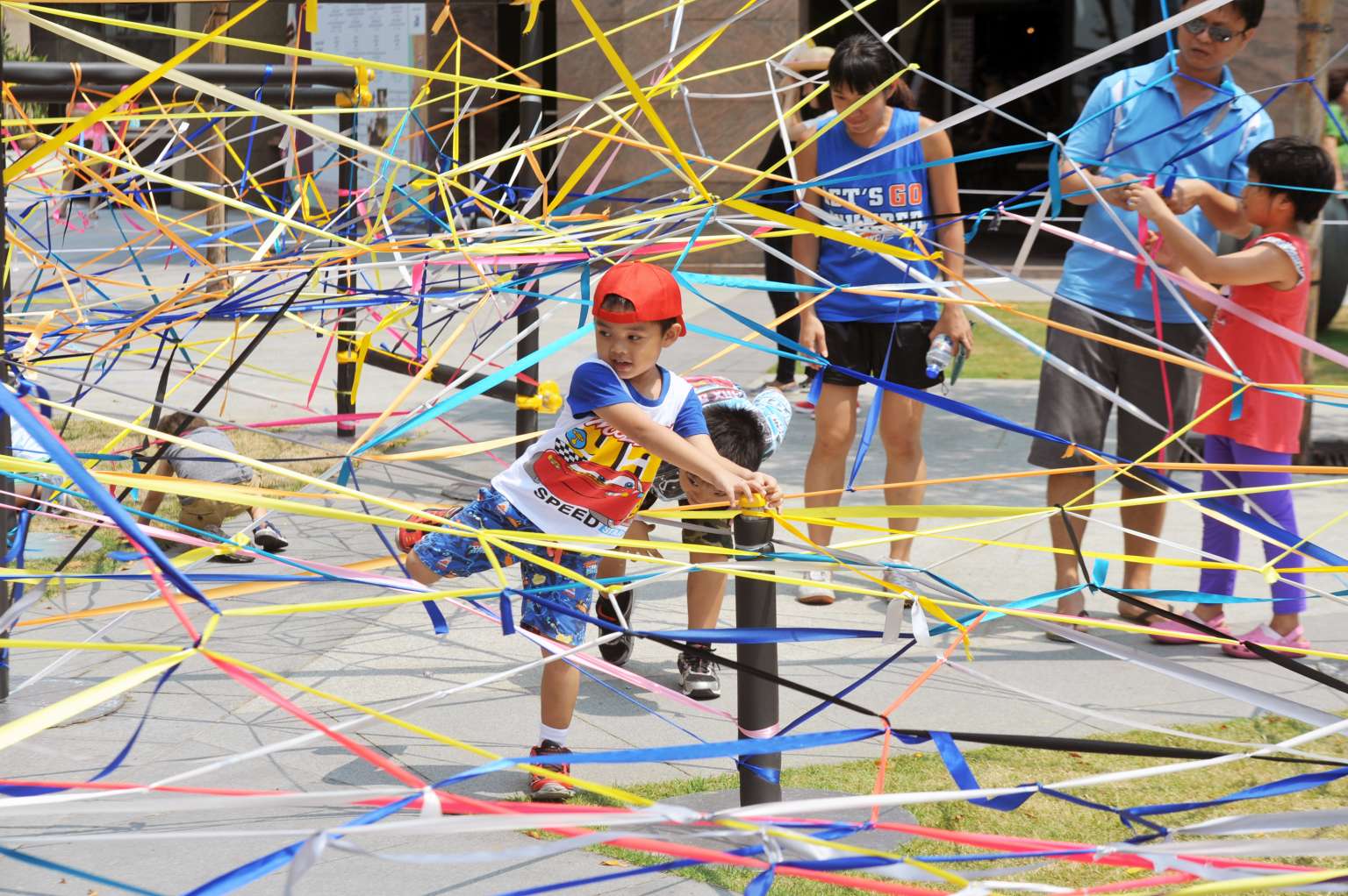 Children enjoying themselves while climbing through the kaleidoscopic live-art installation aMaze Me! at the Esplanade’s Courtyard Green as part of Esplanade's Octoburst! festivities, on Oct 3, 2014.